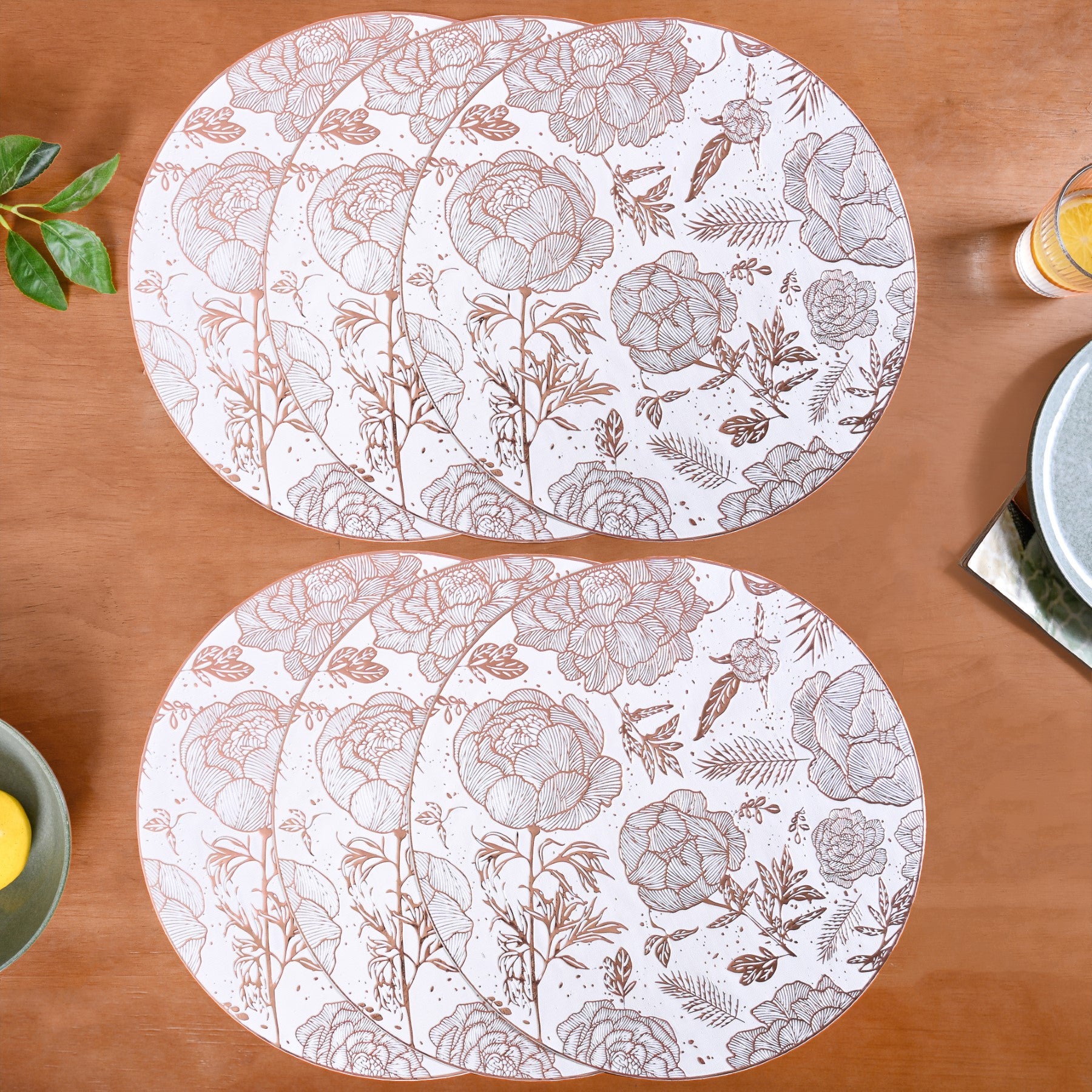 These mats pair beautifully with white, blush, rose gold, or neutral dinnerware and can be styled on wood, glass, or marble tabletops for a romantic or modern floral touch.