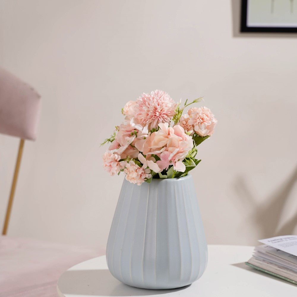 The soft, powder pink-hued peonies are showcased in a bunch and are bloomed to their fullest beauty to enhance the interior decor style of your home. The artificial bunch is made of premium quality material and is added with leaves and a sleek stem to bring you a piece of the flora of gardens or valleys. The faux pink peony bouquet can be gifted on the occasions of birthdays, housewarmings, anniversaries, and multiple festivities.