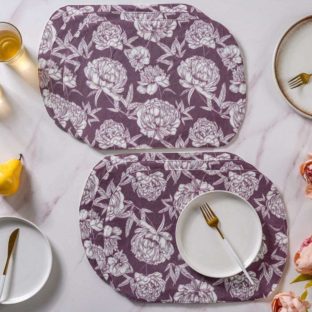 Peony Purple Printed Cotton Table Mat Set Of 6