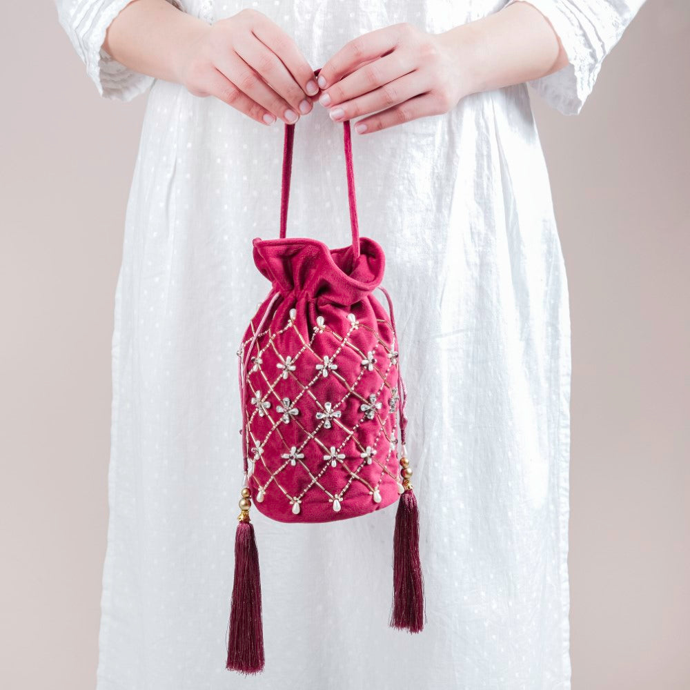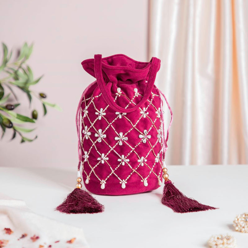 Phulvari Velvet Potli Bag Maroon
