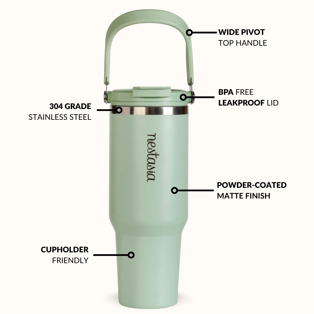 Soft on the eyes and strong on performance, this green tumbler makes everyday hydration feel a little more refreshing.