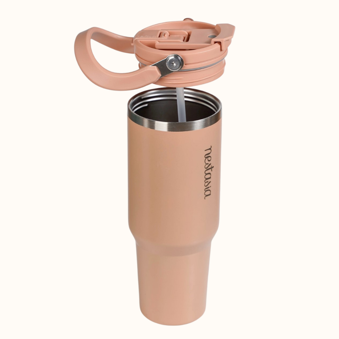 Keep hydration close with this insulated tumbler in a beautiful peach tone. Subtle, warm and effortlessly chic, it adds a touch of beauty to your everyday routine.