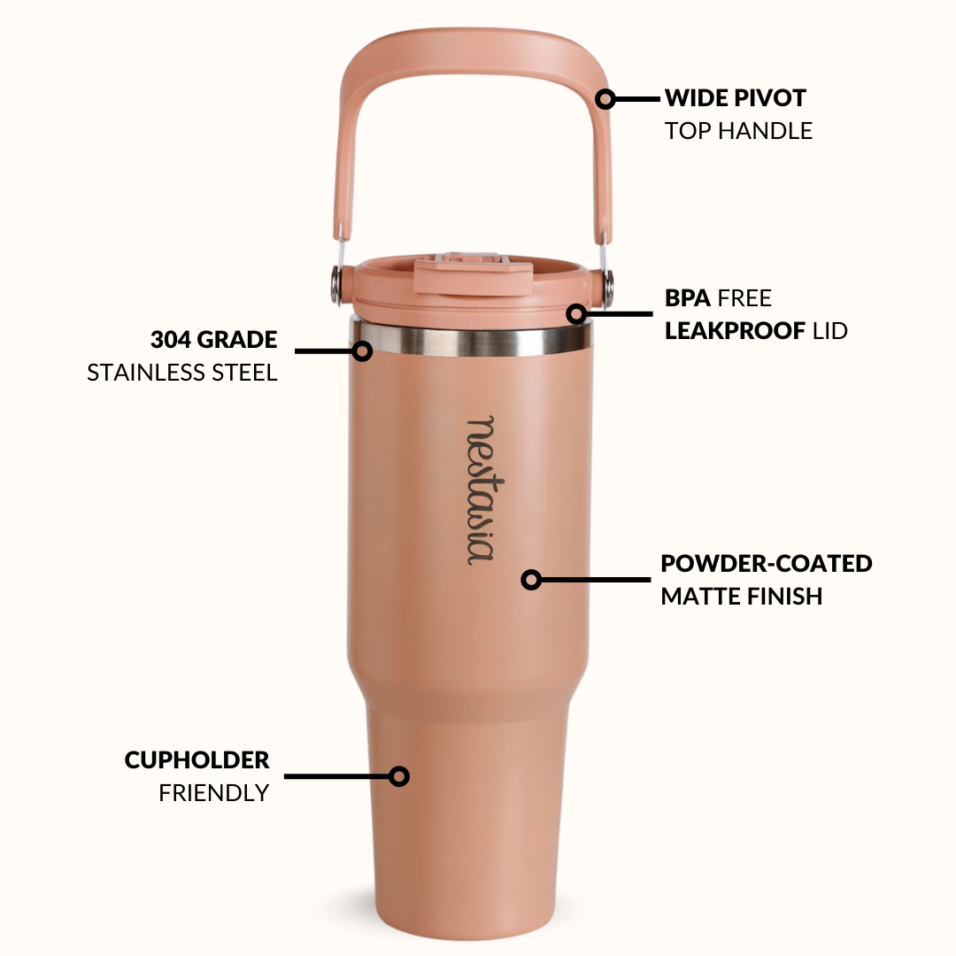 PickSip 40 Insulated Tumbler With Top Handle Soft Nude Peach 1200ml