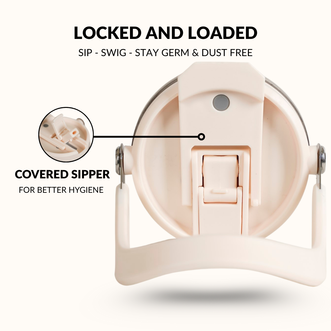 Benefits: The insulated body helps maintain beverage temperature for long stretches, whether hot or cold. Its generous size supports longer use between refills during busy routines, travel, or workouts. The secure sealing lid helps minimise spills while moving. The built-in handle allows for easy lifting and carrying. Multiple drinking openings provide flexibility and comfort with every use.