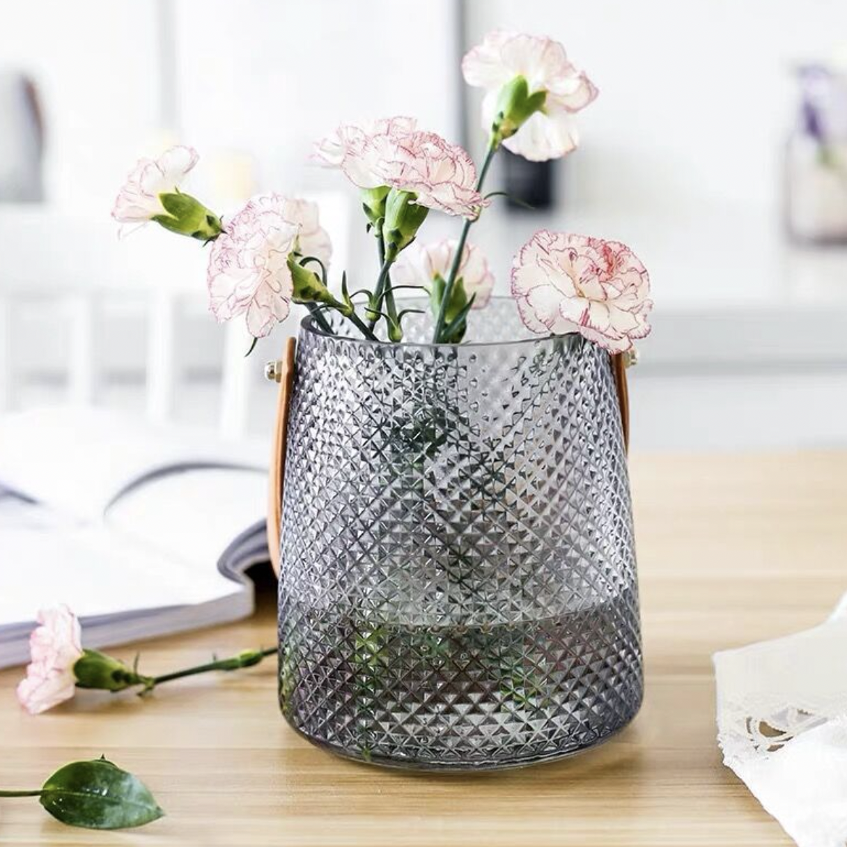 The textured basket-shaped glass flower vase can be used to display a variety of flowers. It is ideal for medium-sized floral arrangements, such as roses, tulips, daisies, or mixed bouquets. Be sure to cut the stems to the desired length and arrange the flowers in a way that is aesthetically pleasing to you.