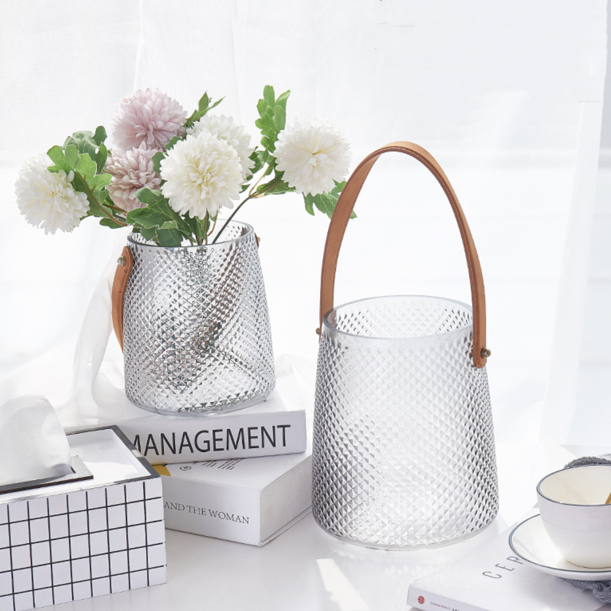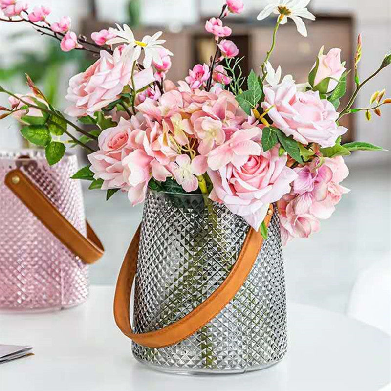 The basket-shaped glass vase is a unique and stylish addition to any home or office decor. The vase allows for a variety of floral arrangements and adds a touch of whimsy to any room. The transparent glass also allows the flowers' natural beauty to shine through. Whether you want to add a pop of color to your space or simply showcase your favorite blooms, this vase is a perfect choice.