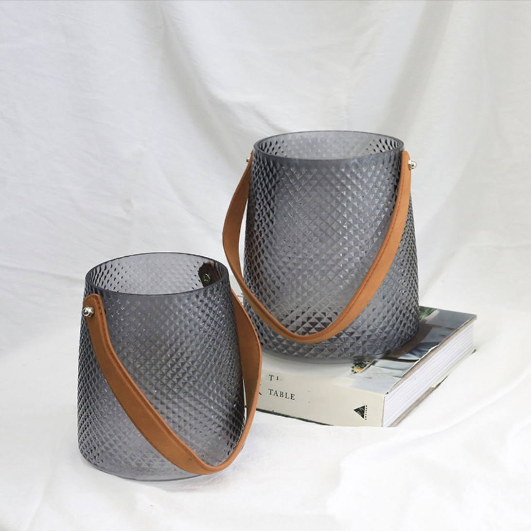 The textured basket-shaped glass flower vase can be used in many different ways. It can be a standalone decorative piece or can be used to hold other items, such as decorative stones. The textured design of the vase adds visual interest and texture to any display or vignette.