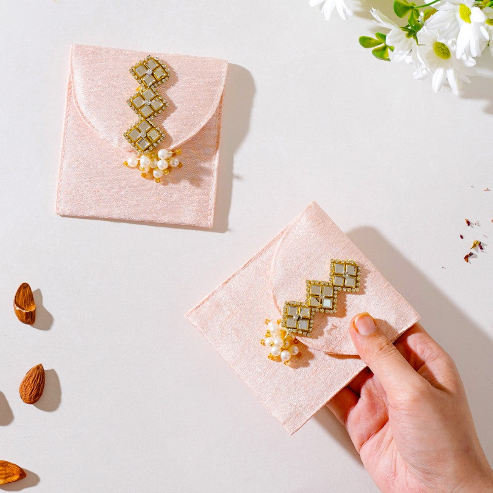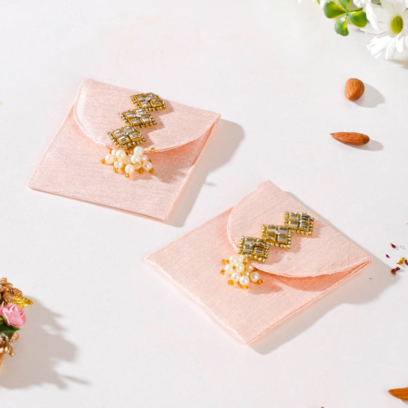 Pink is the colour of warmth and a heart full of affection. So, what's better than an embellished pink festive envelope to convey your best wishes to your cherished ones? We have doubled the joy by offering the envelopes in set of 2. Bring home the embellished, beaded set of 2 pink festive shagun envelopes and gift a bundle of joy and prosperity.