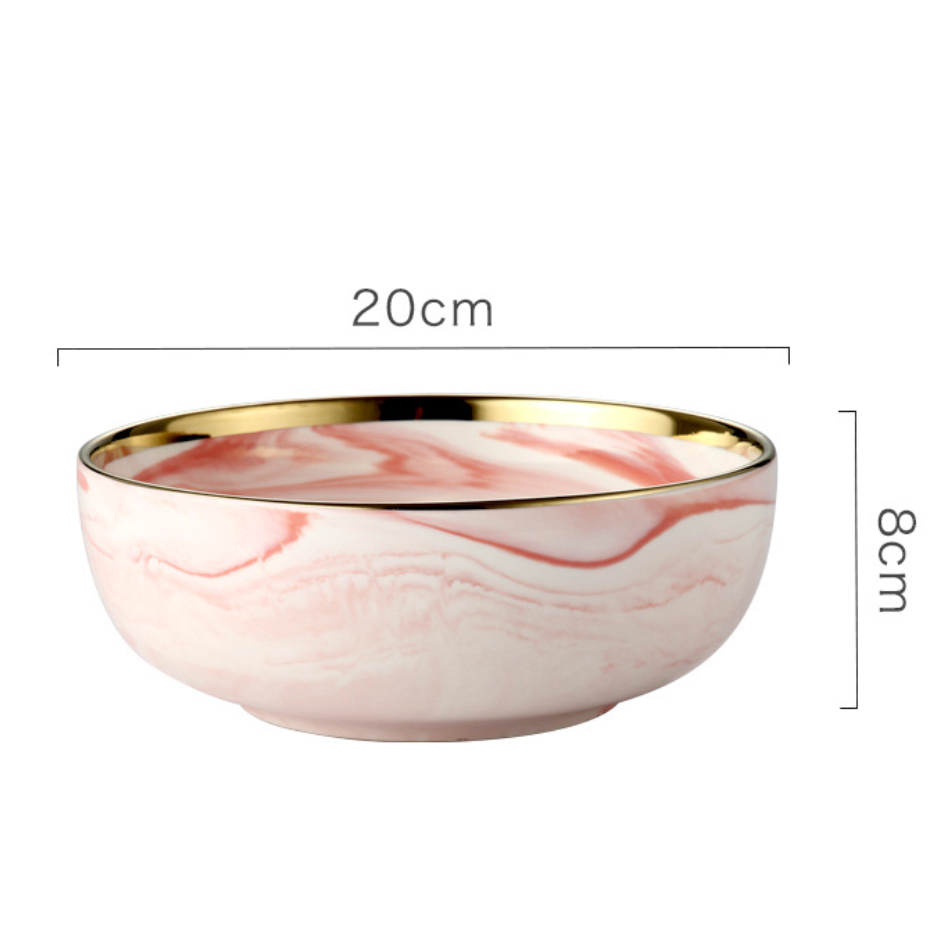 The serving bowl is made of high-quality ceramic, known for its durability and long-lasting performance. It can withstand the rigors of daily use, ensuring it remains a part of your tableware collection for a long time. Moreover, the marble pattern on this serving bowl is also resistant to wear and tear.
