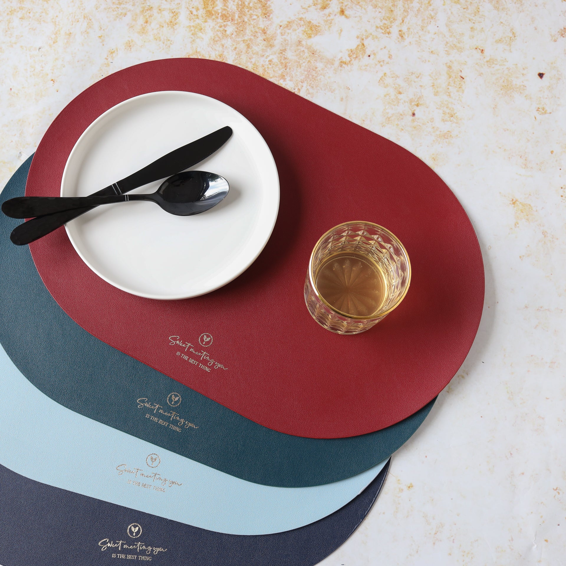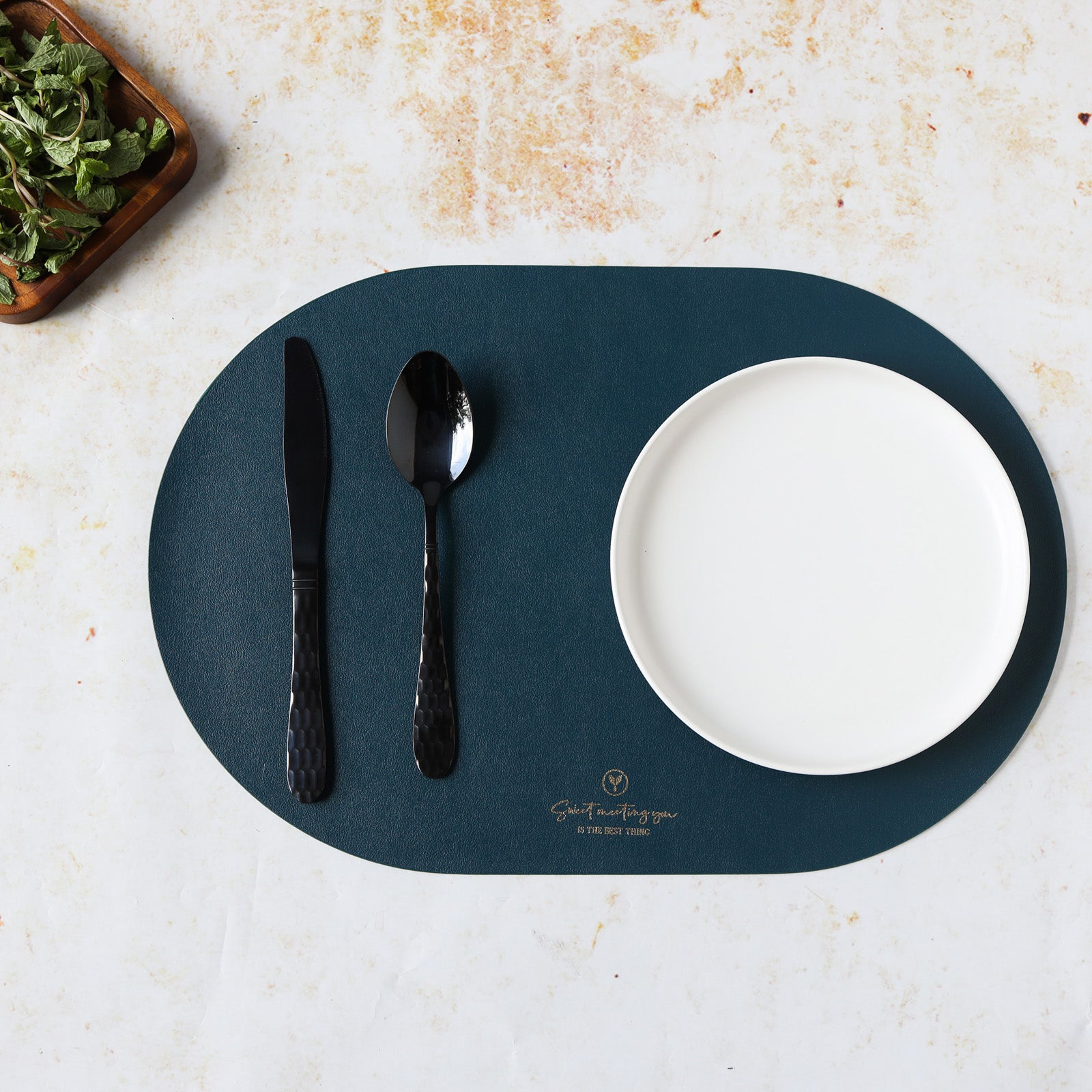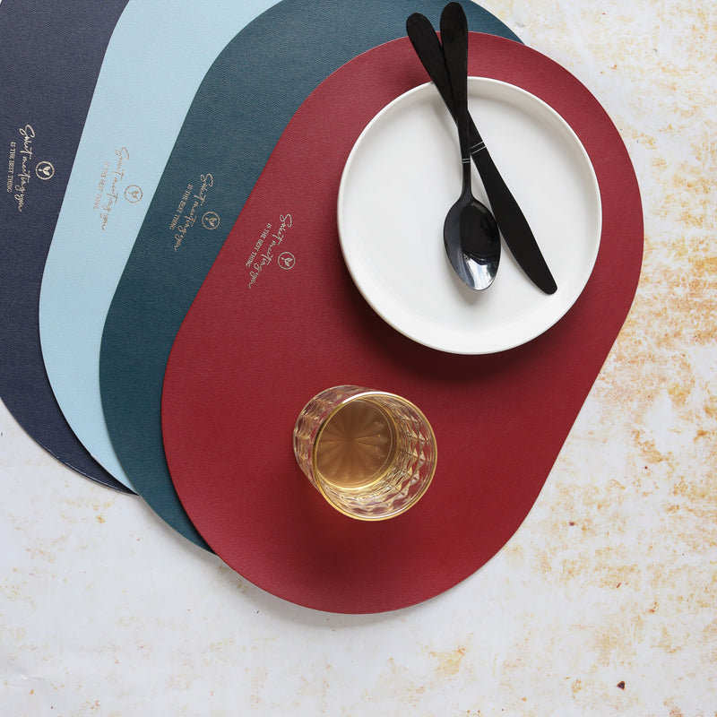 Placemat for dining table that is available in various colours to suit all table and decor setups. The dining table mat comes in a classic oval shape that can enliven a table setup and help in organising the table. The single finish of the table mats also complements all tableware that can easily be cleaned and used. The mat for dining table provides enough space to keep plates, bowls, cutlery as well as napkins. The placemats for dinner also have a greeting message that makes them a great gift for friends and family.