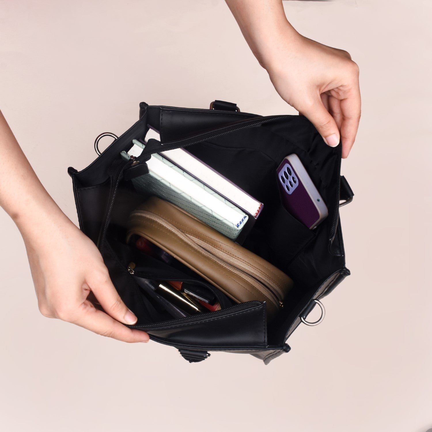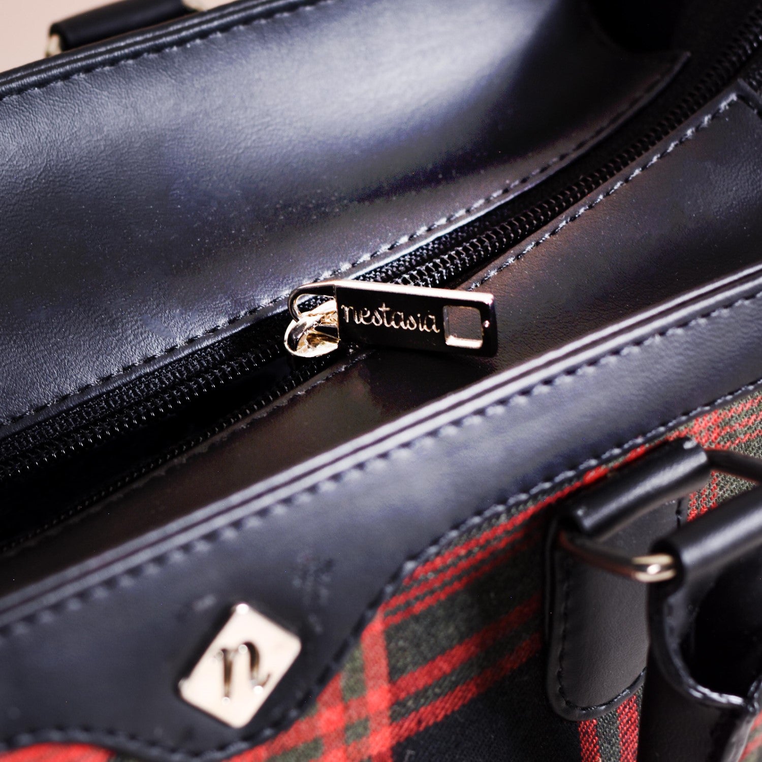 Checkmate darling, our new plaid medium tote bag is the ultimate handbag you need in your wardrobe to take any outfit from drab to absolutely fab! A perfect fusion of style and practicality, this structured bag is crafted from premium vegan leather and features a regal red and green plaid design. And if that wasn’t enough, we’ve ensured to design this day bag with your convenience in mind. Featuring one spacious main compartment, two smaller inner pockets perfect for storing your phones or lipstick, and one secure zipper pocket, this office bag can hold your iPad and other day-to-day essentials effortlessly. The water-resistant inner lining and smooth zipper system of this ladies handbag ensure that all your essentials remain the same. Furthermore, the two sturdy handles, along with the detachable and adjustable crossbody strap, provide you with versatile carrying options, ensuring that this chic classic bag seamlessly adapts to your ever-changing needs, enhancing your on-the-go style with ease and comfort.