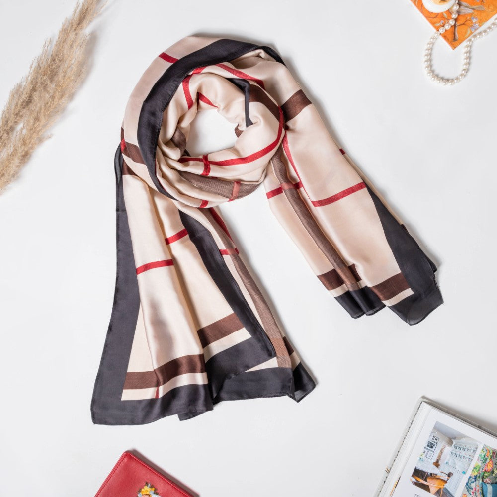 The beige blanket scarf comes in a classic plaid design, featuring brown and red plaid patterns to create an attractive colour palette. The plaid design of the winter scarf makes it look extremely chic and classy. Pair the polyester scarf with a black or white cardigan to make even the most ordinary formal outfit trendy and fashionable. Not to mention, the high-quality polyester fabric ensures that the blanket scarf is soft and smooth to the touch, making it an iconic piece of winter wear.