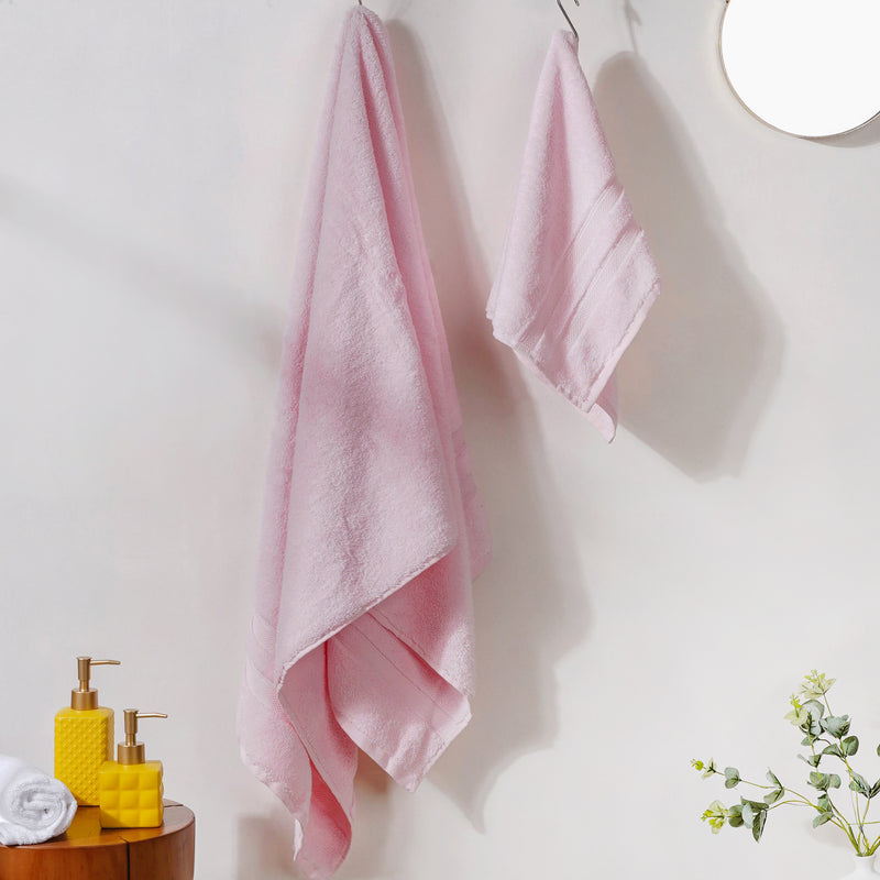 The luxury towel set provides one with a spa-like experience with the softness and comfort of the fabric. The towel set consists of 1 bath towel and 1 hand towel which have been crafted with high-quality pure and organic cotton. The bath towel and hand towel with their extremely plush and eye-soothing pastel pink color will instantly upgrade the bath time ritual.