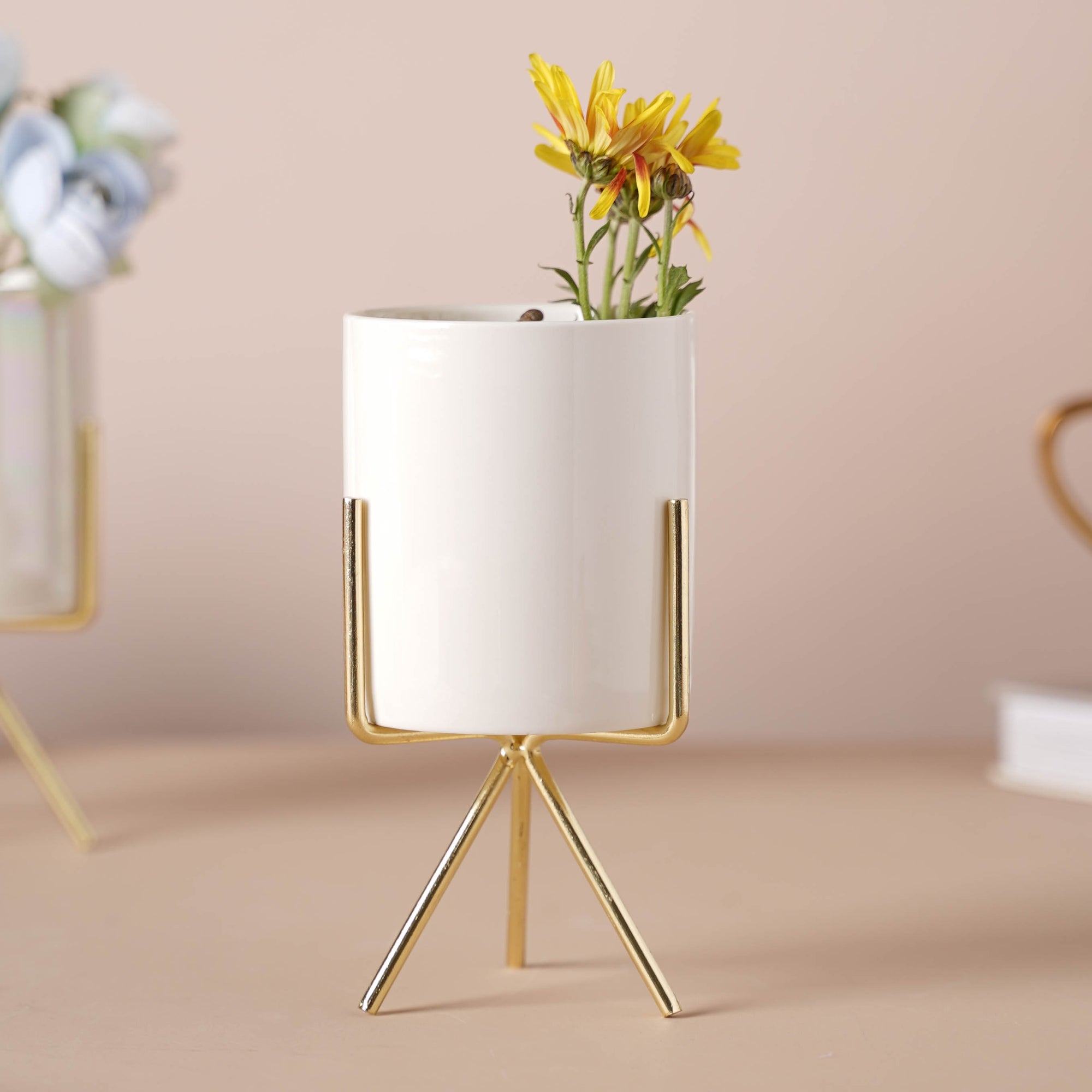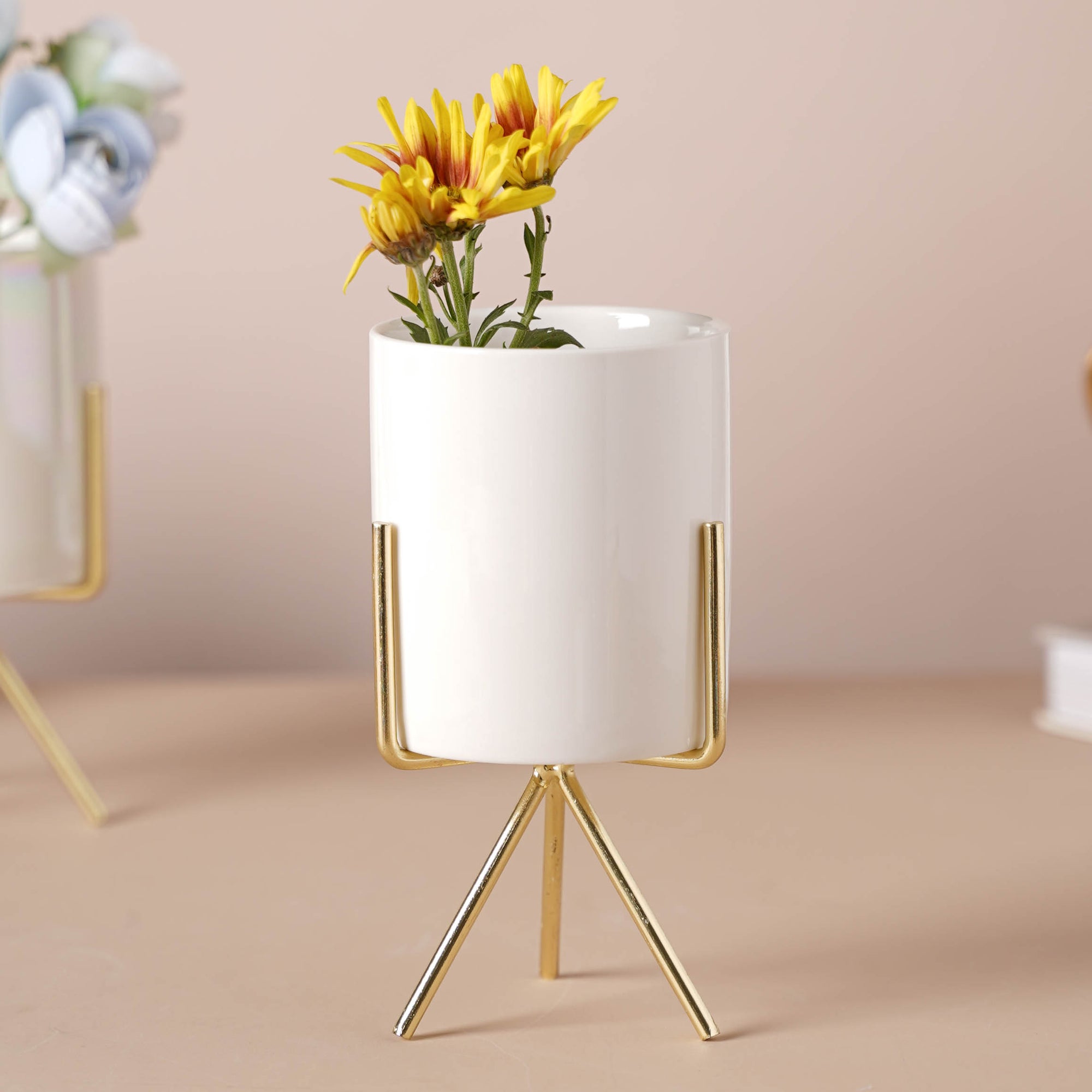 The beautiful ceramic pot will add to the style and décor of one's place whether kept indoors or on the balcony. The planter comes in three fade-resistant eco-friendly colors and with a three-legged metal stand that can be assembled easily. The cylindrical shape makes it appropriate for adding any plants in it whether real or artificial.