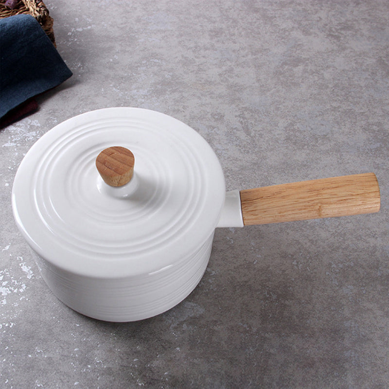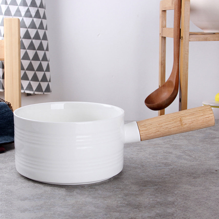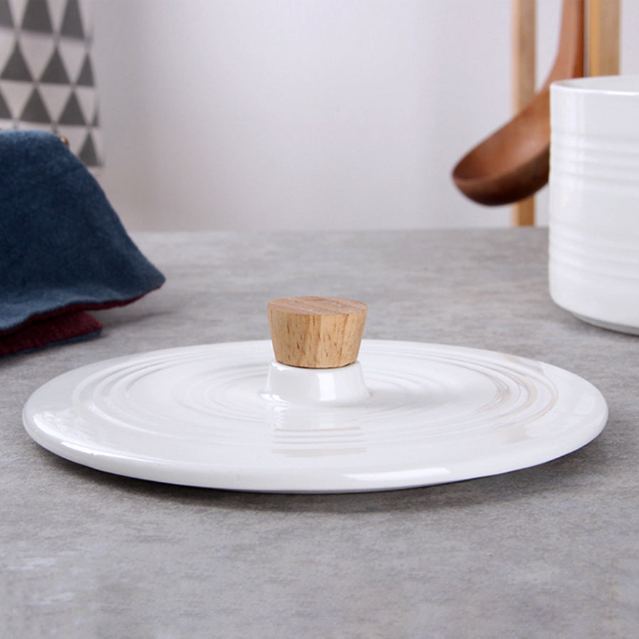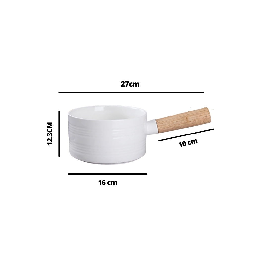 Pot with handle that is a perfect fusion of elegant white and earthy wood. The white pot with lid is a great serve-ware that can be used to serve guests in style. The bowl with lid can be used to serve hot biryani, lentils or vegetables with broth, with the lid of the bowl to keep the food warm and the handle to make serving easy.