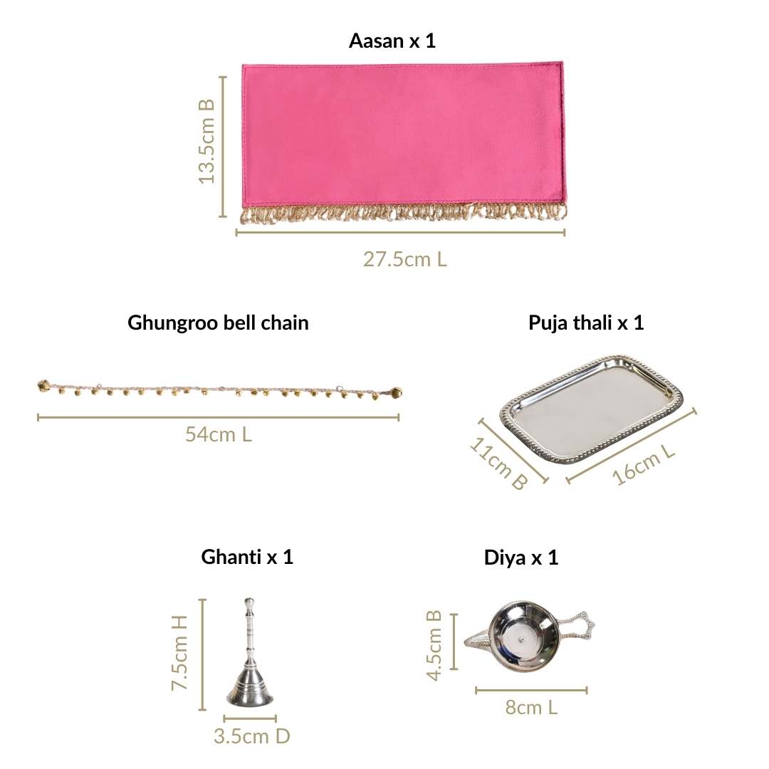 Prarthana Puja Mandir Medium With Ghungroo Chain Aasan Puja Thali Diya And Ghanti Set