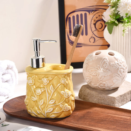 Yes, the ceramic soap dispenser is designed to be durable. The dispenser is expertly crafted, emphasizing precision and quality in its production. This craftsmanship ensures that the ceramic material is utilized effectively for durability.