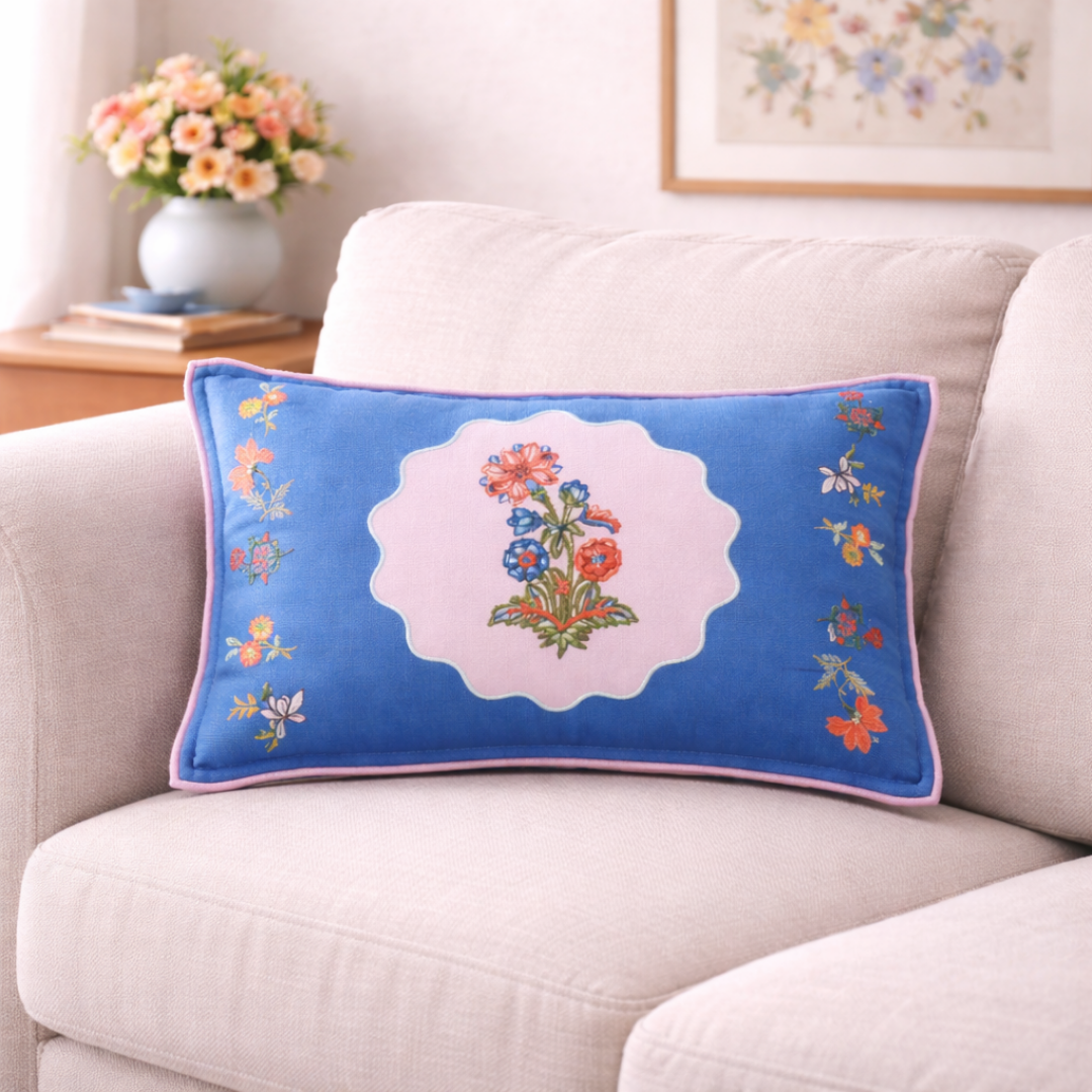 Benefits: Breathable cotton keeps the cushion fresh, gentle, and comfortable for daily lounging. The rectangular shape allows easy changes and stays well placed without sagging. Floral embroidery brings colour without clutter, offering comfortable support and a quick visual refresh for sofas, chairs, or beds.