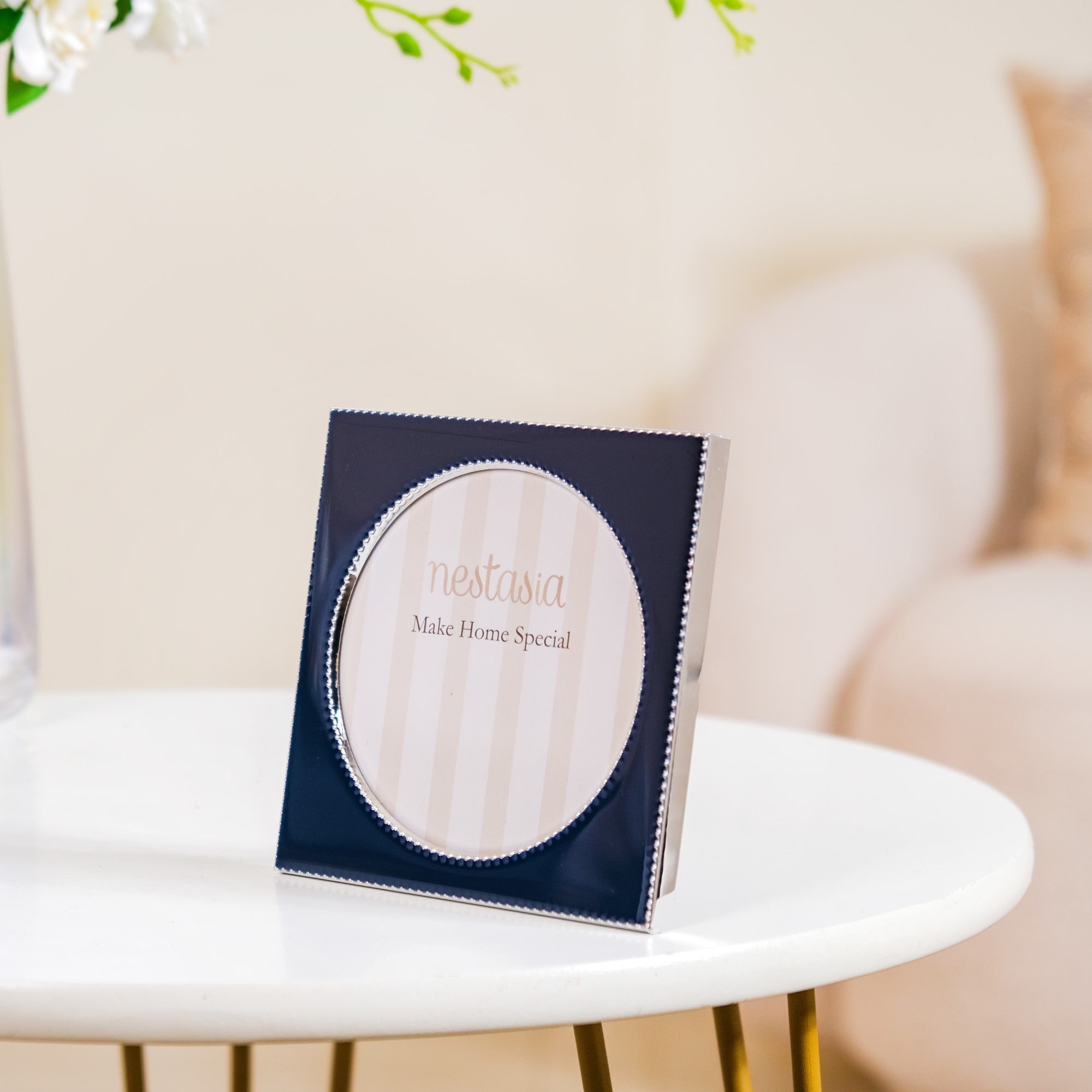 Changing photos in this frame is a straightforward process. The circular photo display allows you to easily insert and replace photos without the need for any complex steps or tools. Simply lift the circular photo insert from the frame, replace the existing photo with your new one, and then place the circular insert back into the frame. This user-friendly design ensures that you can change your displayed photos frequently and effortlessly, making it a convenient choice for showcasing a variety of memories and images.