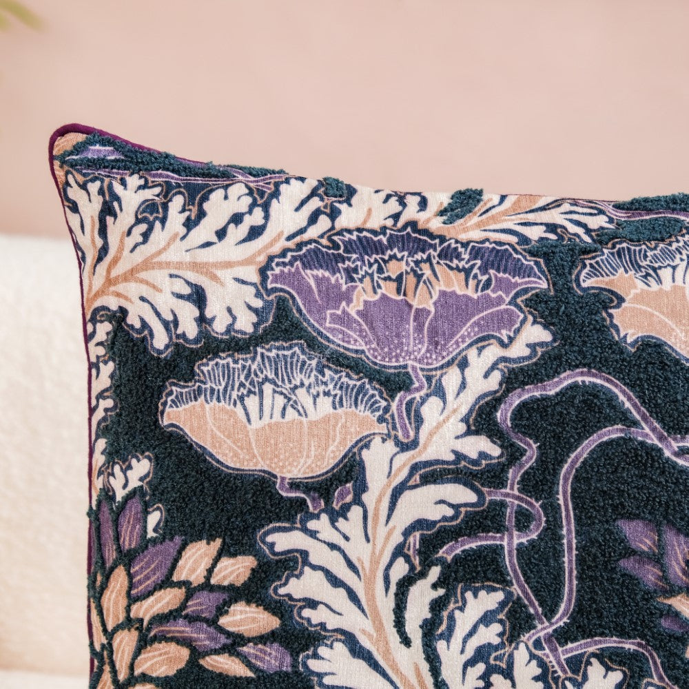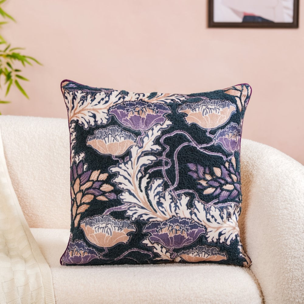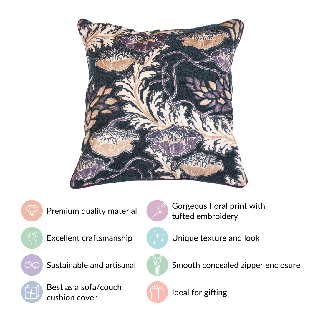 The uniqueness of this cushion cover lies in its intricate floral and abstract patterns, meticulously blended to create a stunning visual appeal. The tufted embroidery not only adds a luxurious texture but also enhances the overall design, making it a standout piece in any room. The vibrant multicolored palette adds a touch of whimsical charm, making this cover a statement piece for home decor.