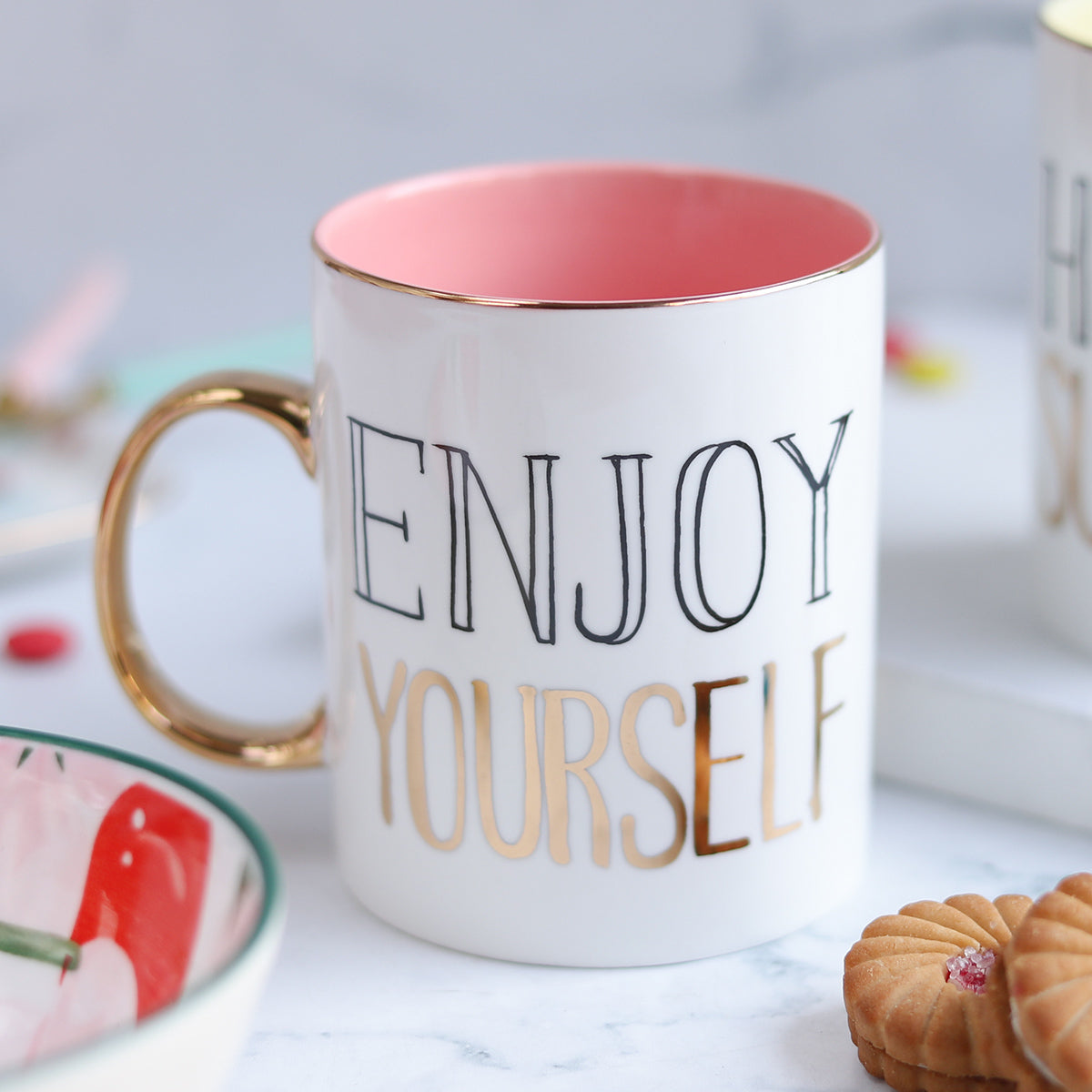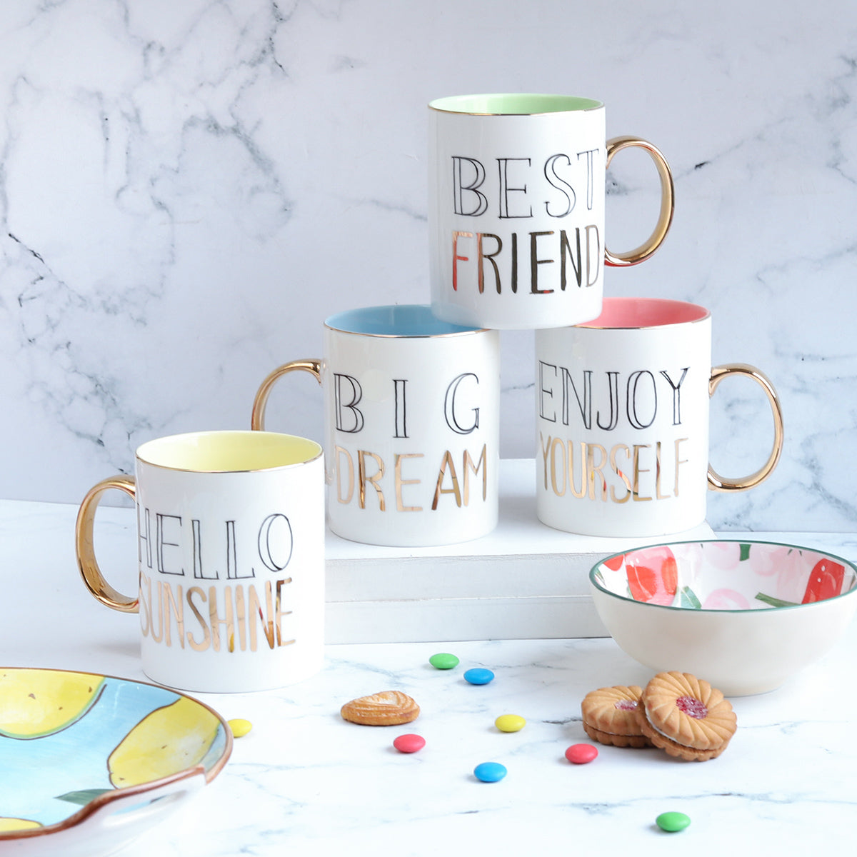 Printed mugs with handle that comes with a text printed on the surface and a golden handle that makes the cup apt for being used as a tea mug or a coffee mug. The tea mugs are available in different colour combinations on the inside which gives it a contrasting look. The text on the mug gives positive vibes and can be gifted to the dear ones.