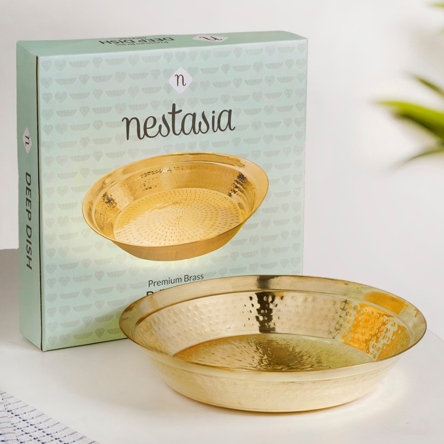 Benefits: As a high-quality brass utensil, this deep dish is highly durable and made to last. It is 100% food-safe, completely free of lead and toxins, ensuring a pure and healthy cooking experience. The smooth surface makes it easy to clean after every use. In addition to its practical applications, this brass utensil offers a range of unique health benefits rooted in traditional Ayurvedic beliefs. It is believed to help boost immunity, promote gut health, and even assist in thyroid balance. The anti-inflammatory properties of the metal may also help in reducing inflammation within the body, while its overall composition is thought to help detoxify the body. It comes with a brass care solution to preserve its beauty. This brass utensil is Teflon-free for safe cooking and retains food’s natural nutrients.