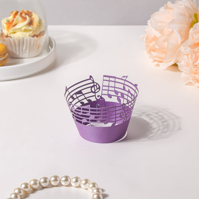 The purple decorative paper cups are designed with elegant hollowed-out musical notes to steal the show. The shiny purple appearance makes them easy to match with an array of types and styles of pastries, cupcakes, and muffins. The cupcake holders are suitable for a variety of informal and formal occasions, such as birthdays, anniversaries, weddings, banquets, balls, Christmas, Halloween, and much more.