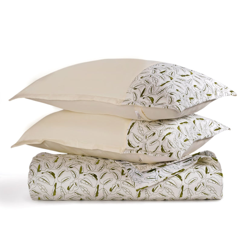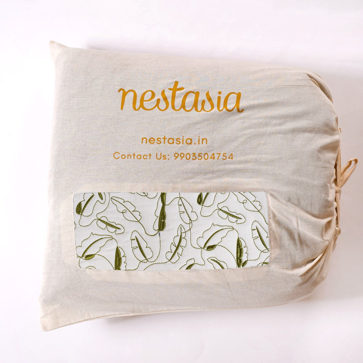 The versatility of the bedding set enables effortless coordination with a range of wall colors and bedroom decor styles. With its calming off-white shade and intricately embroidered leaf patterns, it effortlessly accommodates diverse design preferences, infusing your sleep haven with refinement and allure. Whether your room features vibrant tones or subtle shades, this bedding set seamlessly complements varying decor schemes, establishing a unified and fashionable atmosphere.