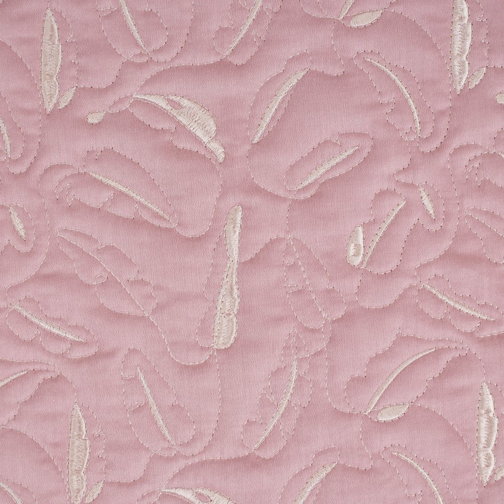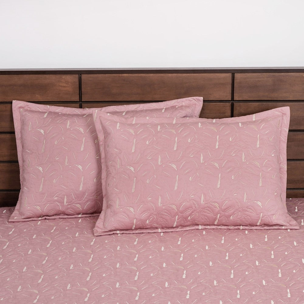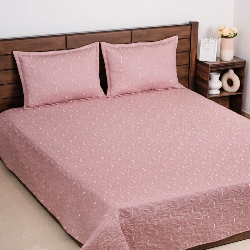 The extremely comfortable king-sized bed cover with intricate leaf-shaped embroidery detailing will transform your bedroom into a luxurious haven. This set includes a king-sized bed cover and two matching pillow covers, all expertly crafted to provide a premium quality product that will last for years even with daily usage. The upper layer of the bed linen is made from 100% cotton with a 300 thread count, providing a soft and smooth surface that feels gentle against your skin. The backing fabric is made from polycotton, providing durability and easy maintenance, while the lush interlining provides extra thickness and comfort. The bed cover is skin-friendly, ensuring a comfortable sleep all night long. The intricate embroidery detailing adds a touch of elegance and sophistication to your bedroom decor, while the pink colour provides a cheerful and soothing ambience.