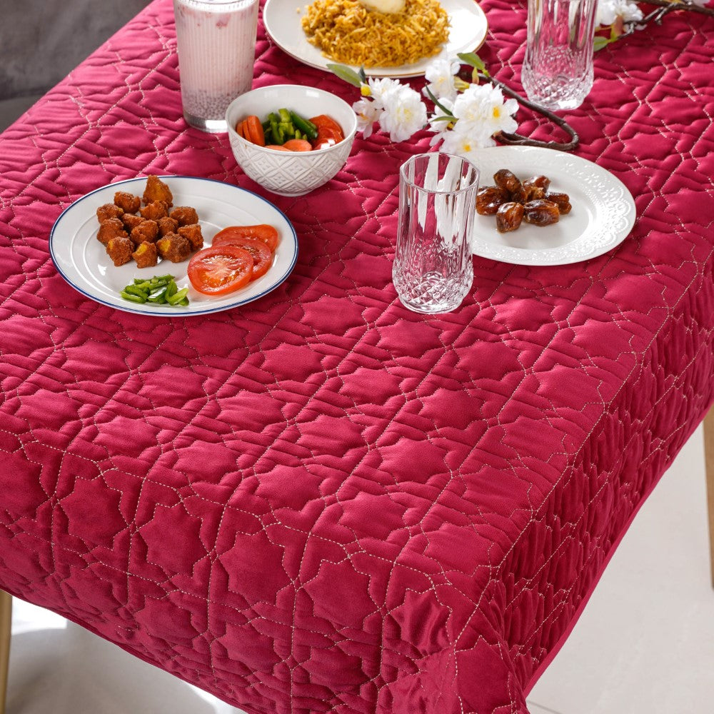 Quilted Zari And Velvet Table Cover Magenta 52x40 Inch