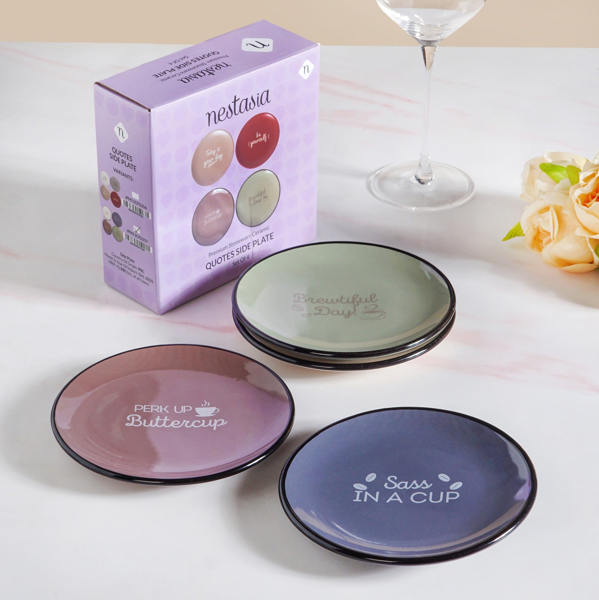 Nestip: Pair this plate set with our Quirky Quotes Coffee Mugs Set Of 4 170ml to create a cohesive look!