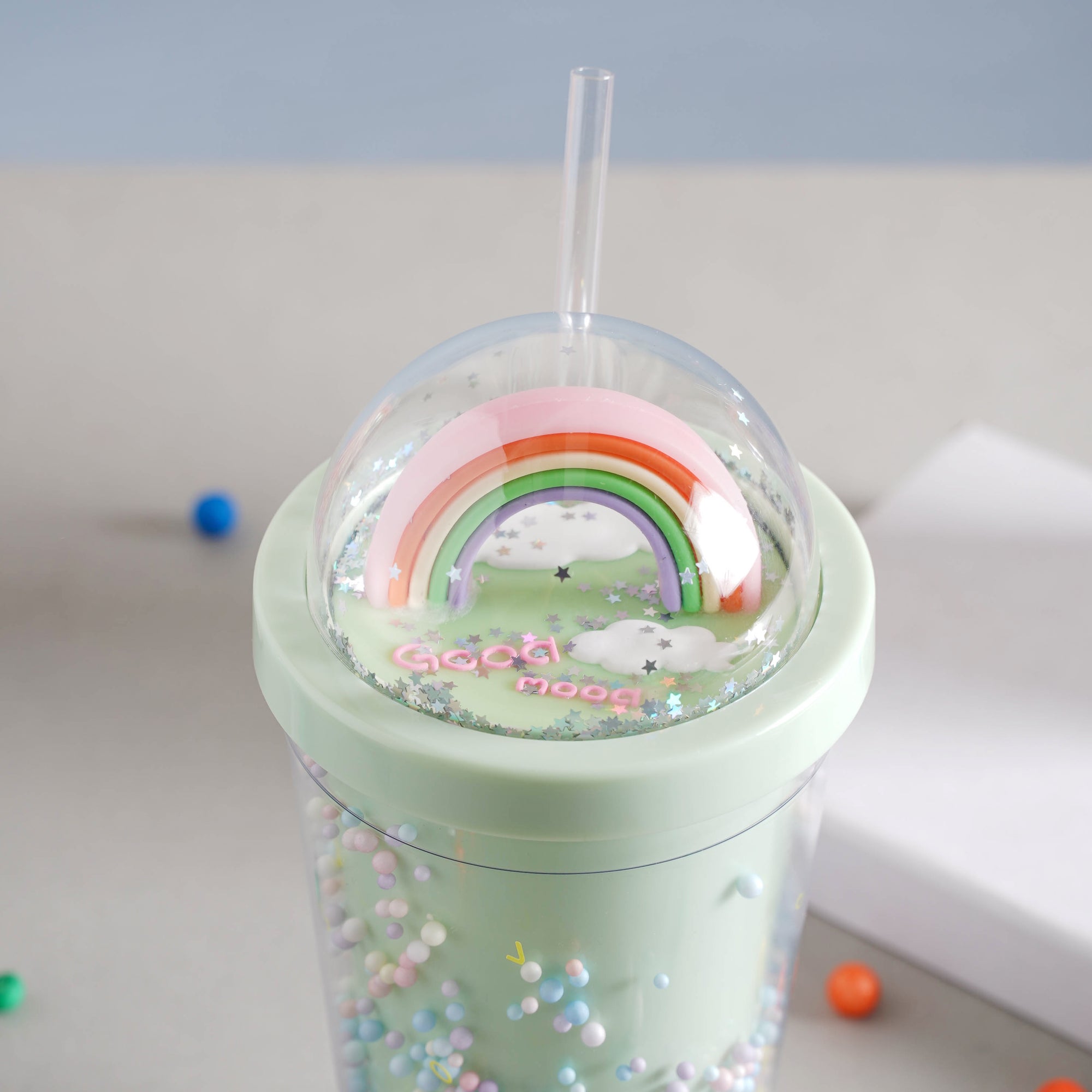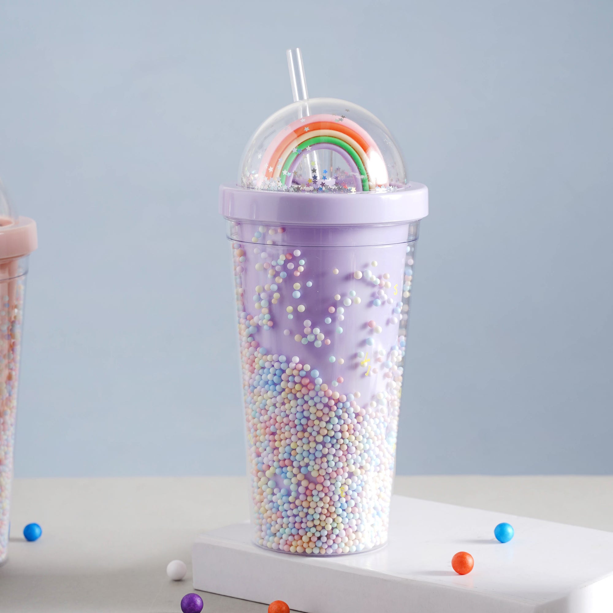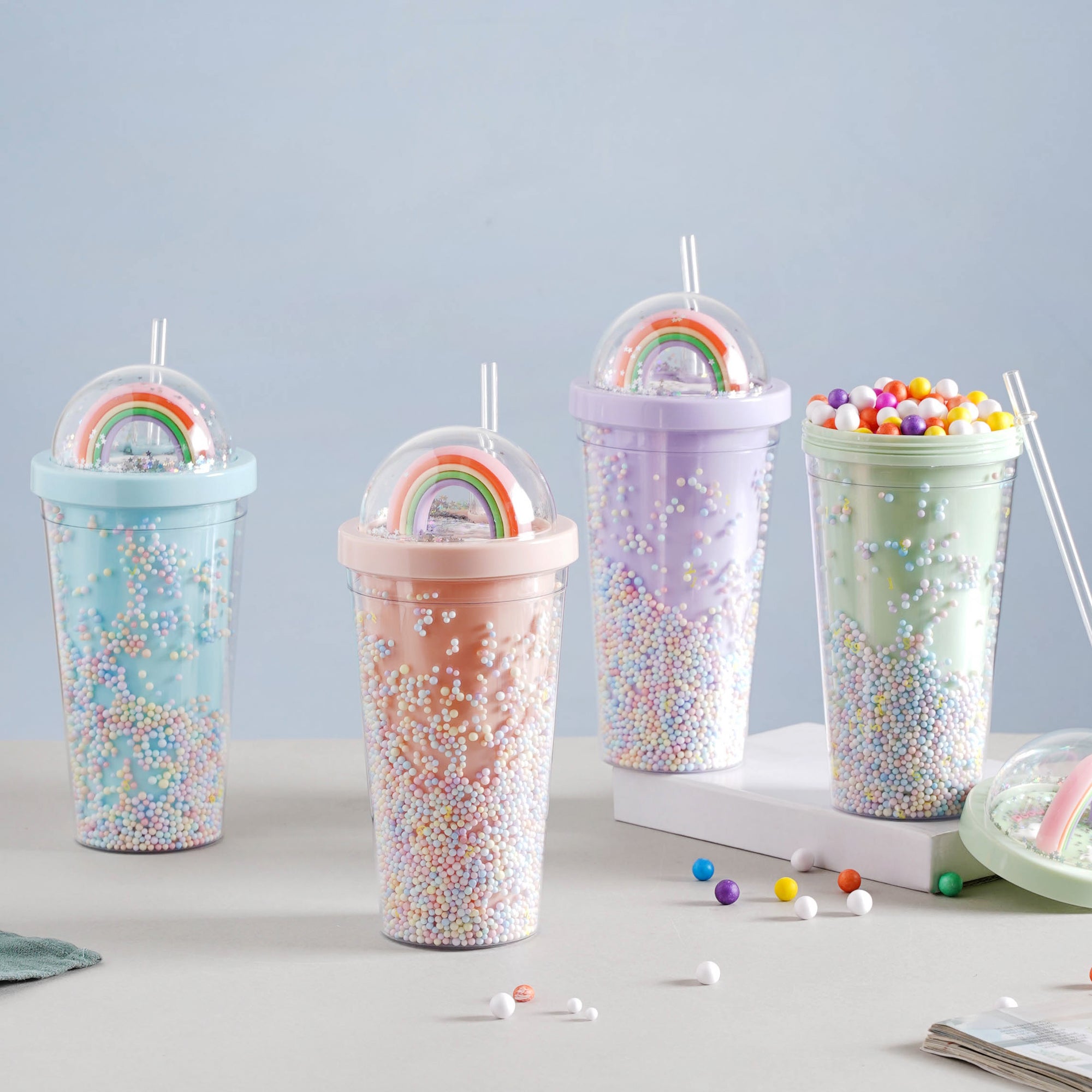 The rainbow tumbler is a colourful and useful accessory that is sure to catch the eye. It comes with a straw and lid which prevents spillage and provides ease of consumption when you're carrying it on the go. It'll make shake time (or any beverage time for that matter) ten times more enjoyable! This bottle is perfect for folks on the go with their smoothies, juices, or plain old water because of its easy-to-carry quality and sufficient volume. With its artful design and lid-to-base pastel shimmer, this is a great gift for both youngsters and adults.