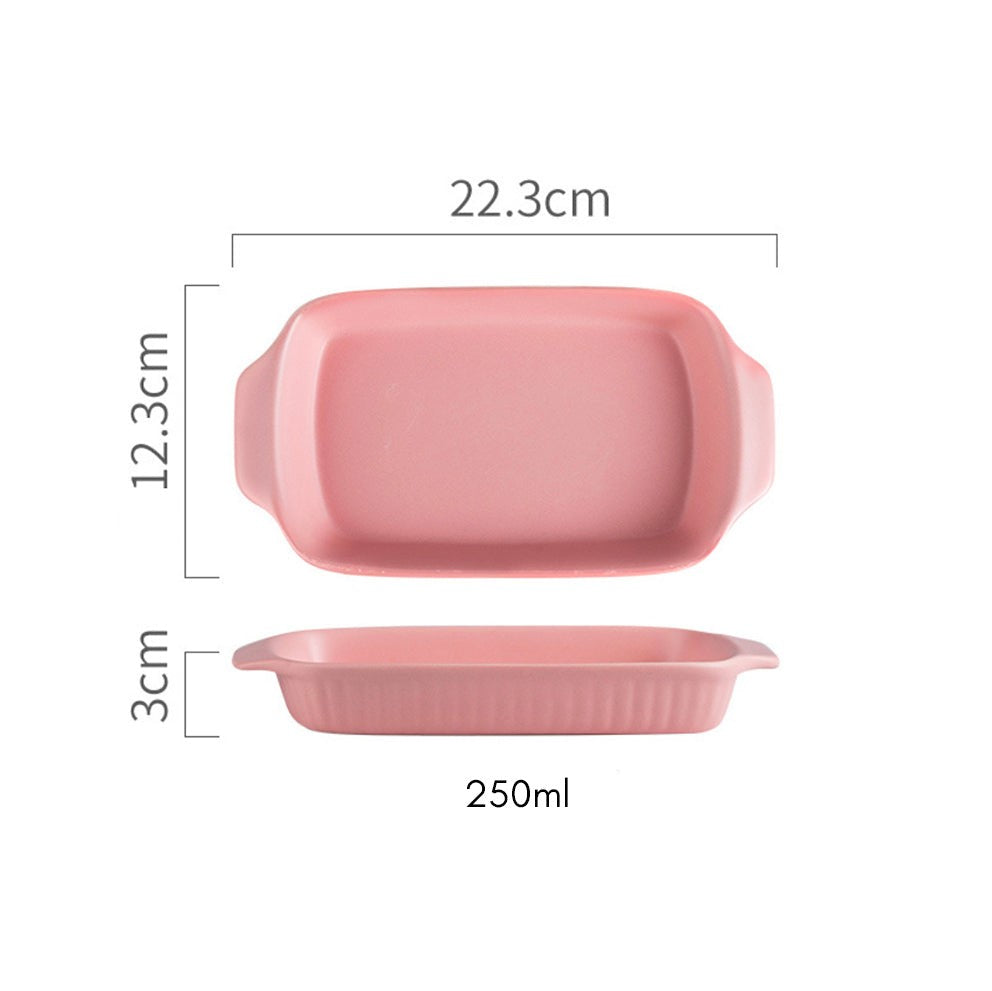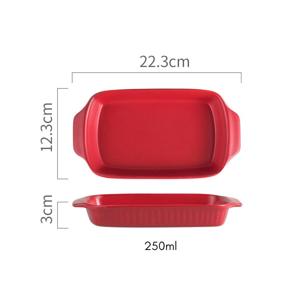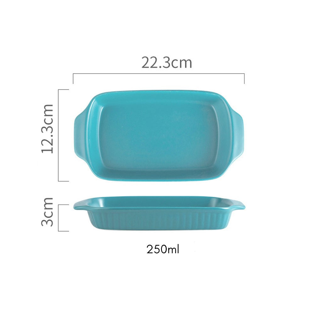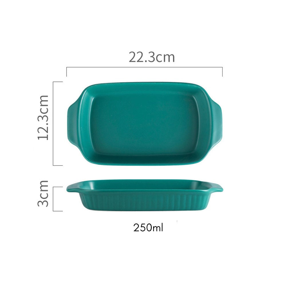 Rectangle baking pans are ceramic baking bowls which can also double up as serving bowls. The baking pans come with handles which make them easy to pick and place. They are apt for being used as fruit bowls, snack bowls, noodle bowls, pasta bowls, and rice bowls. The ceramic bowls are apt for an elevate bake and serve experience. The dishes are oven, microwave and dishwasher safe.