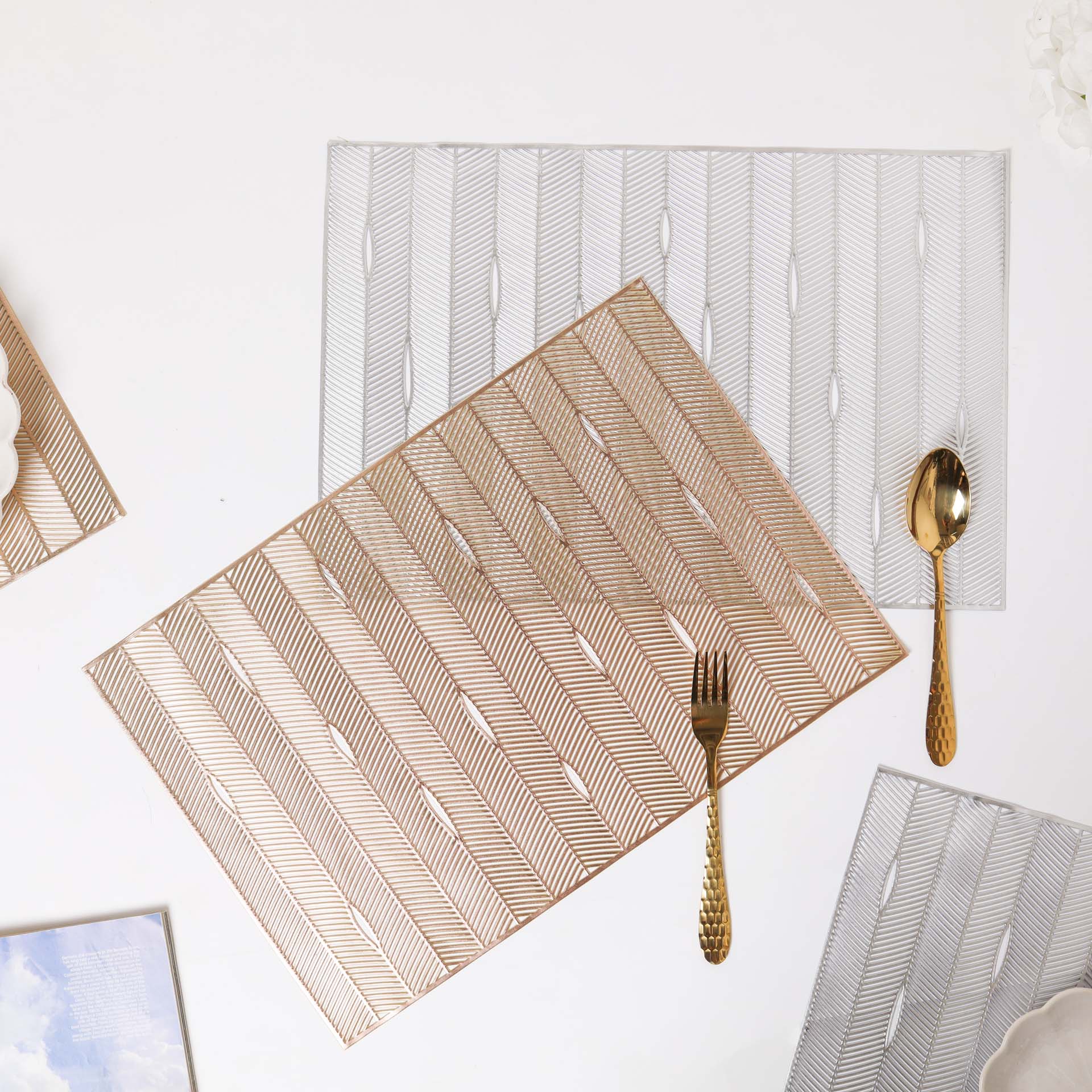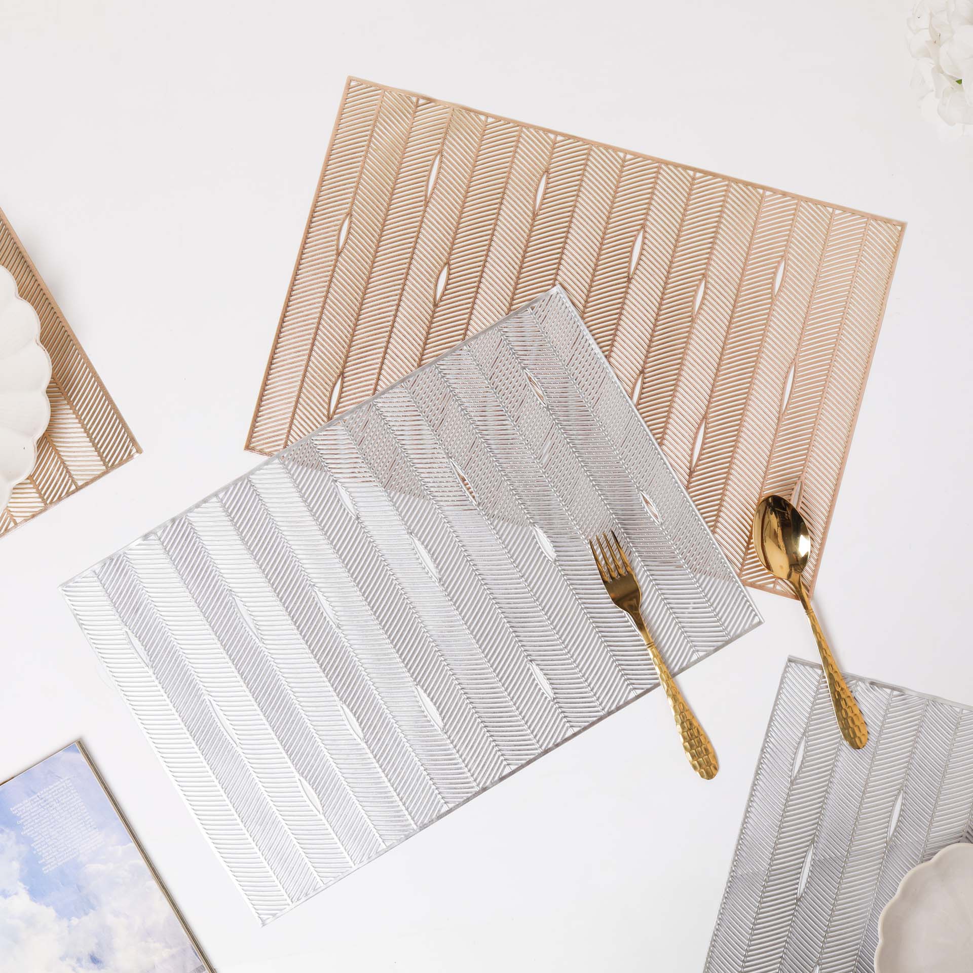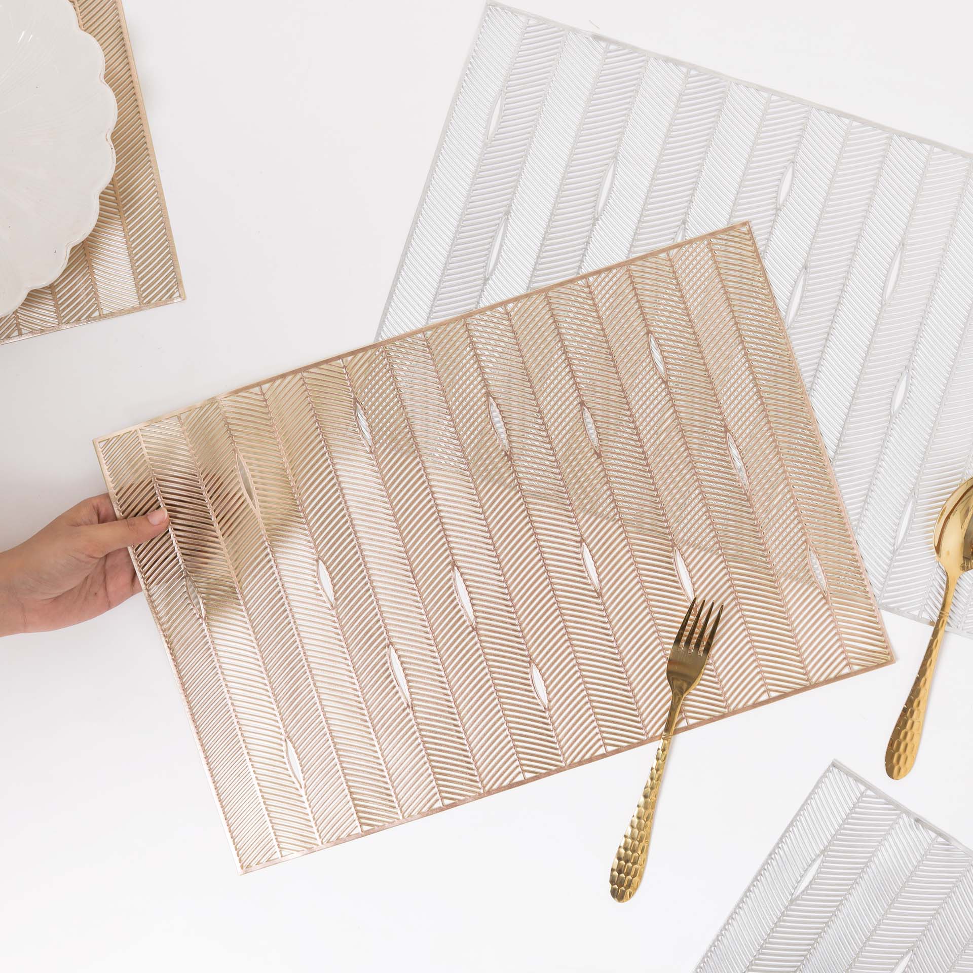 The rectangular placemat is sturdy and adds sophistication and style to the dinner table. The table mat can withstand wear and will last a long time in any household, whether used regularly or on special occasions. For a formal occasion, pair the mats with white crockery and gold cutlery. The mats follow a symmetrical design while the border is thicker than the mesh-like pattern used all over giving the mats a defined rectangular structure.