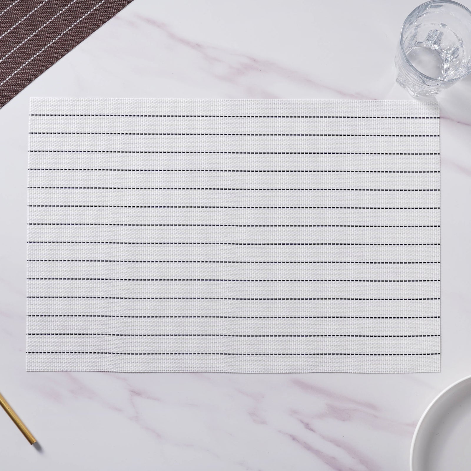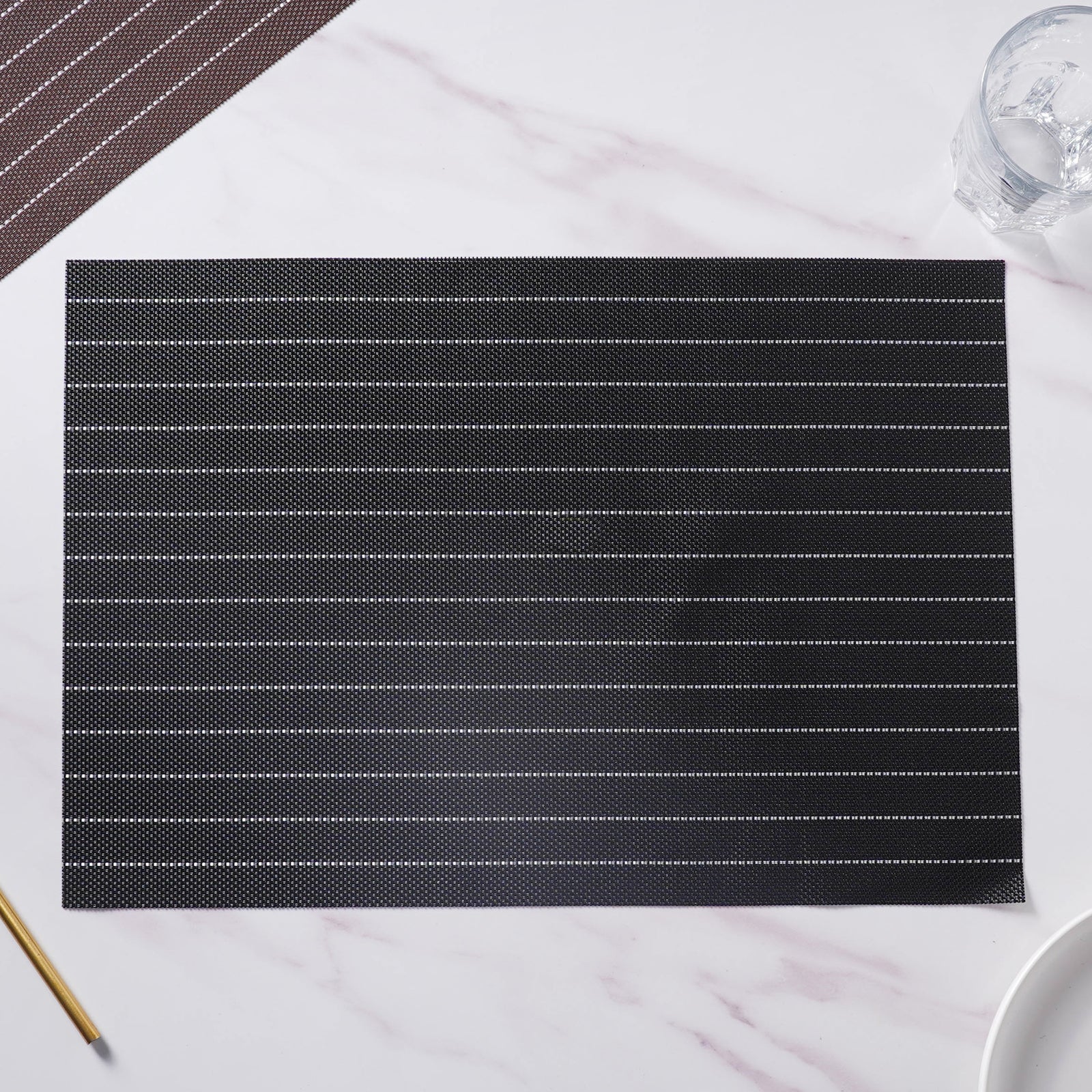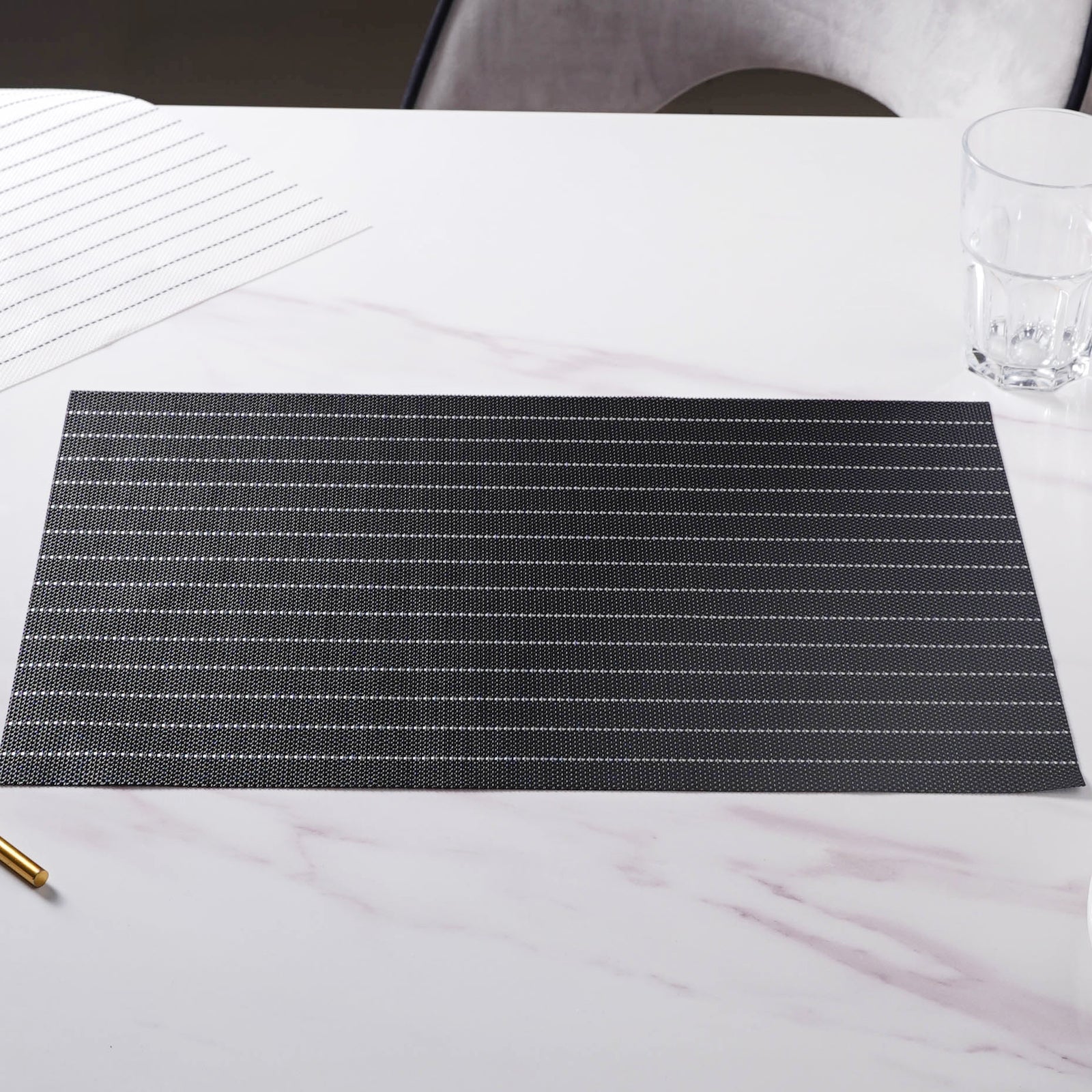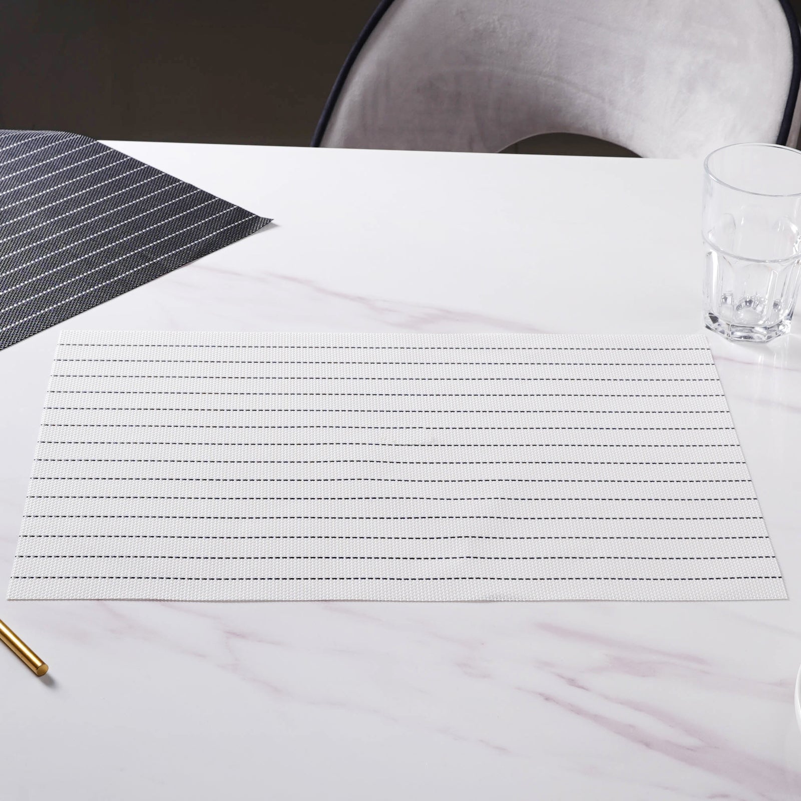 Rectangular table mat or placemat that is available in three colours. The sophisticated hues of the mat and its horizontally striped pattern give the mat an elegant and formal aura. It is effortlessly washable and foldable and can also be rolled and kept in mat rings. The anti-slip surface of the mat allows keeping the cups and glasses in place.