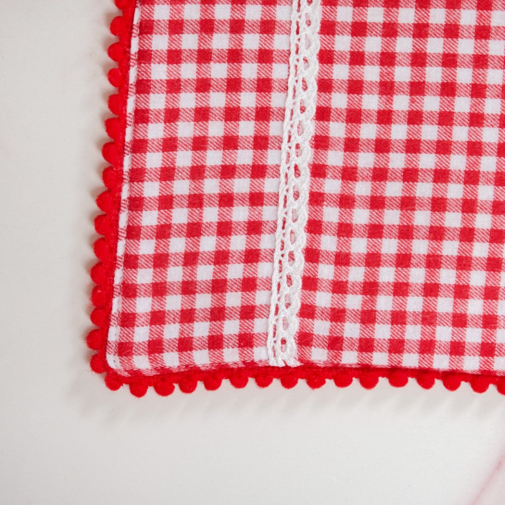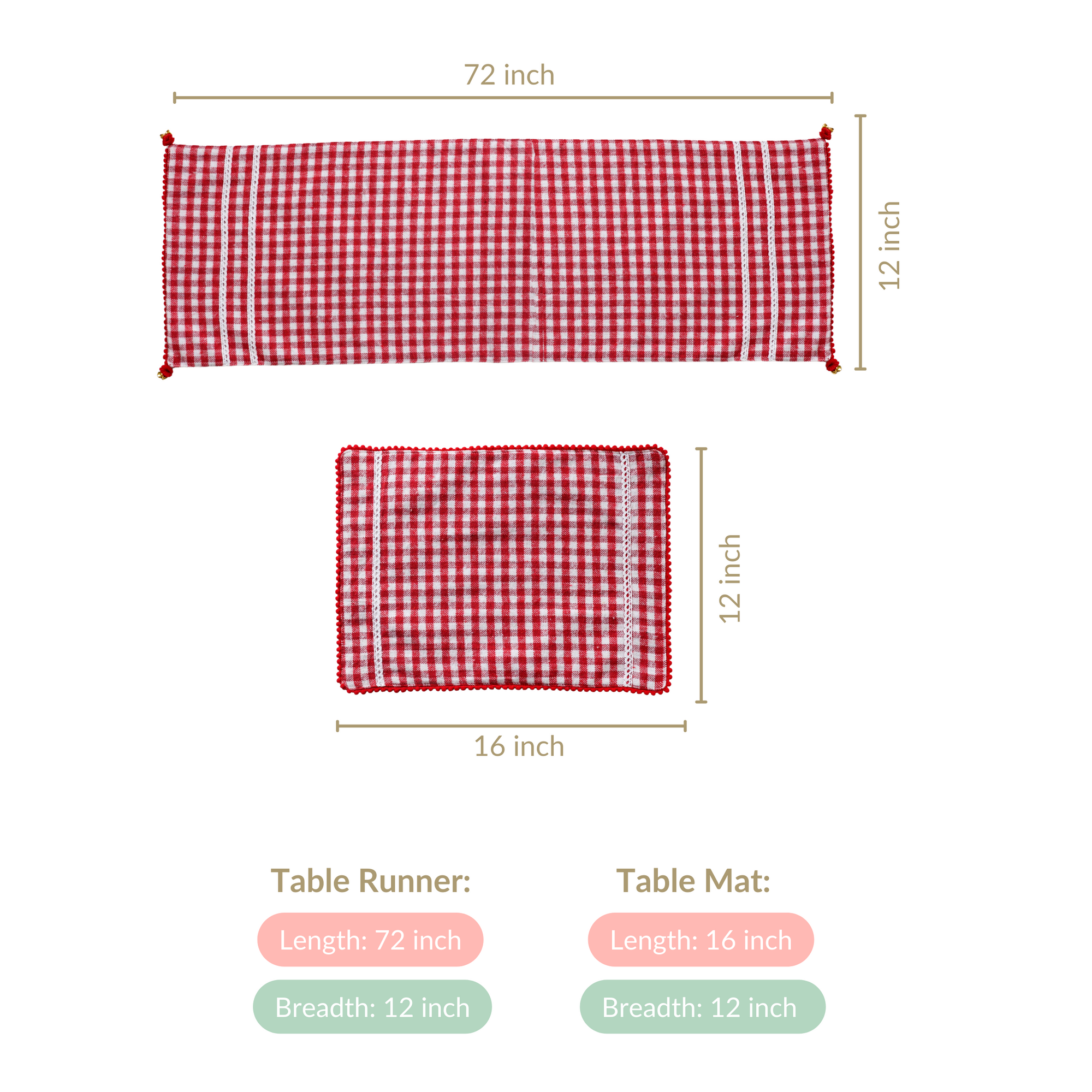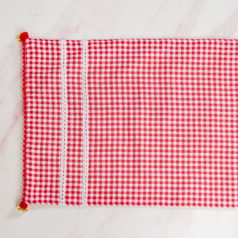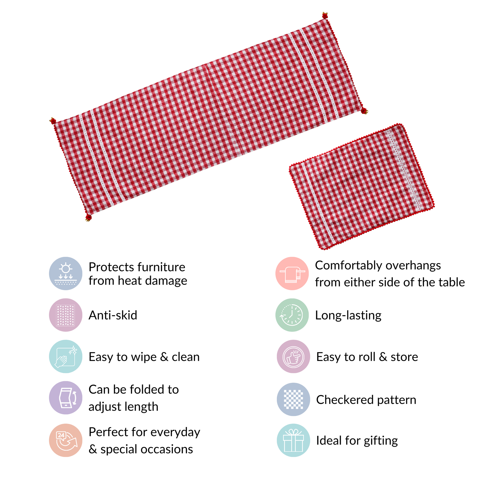 While the red color in the checkered pattern is typically selected for durability, however, prolonged exposure to direct sunlight is a common factor that may contribute to gradual fading. To maintain the vibrancy of the red color, consider placing the table linen away from direct sunlight when not in use or using window treatments to reduce exposure.