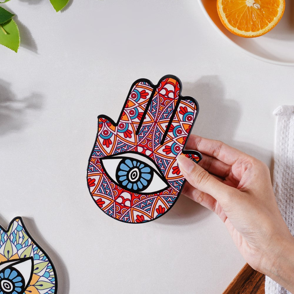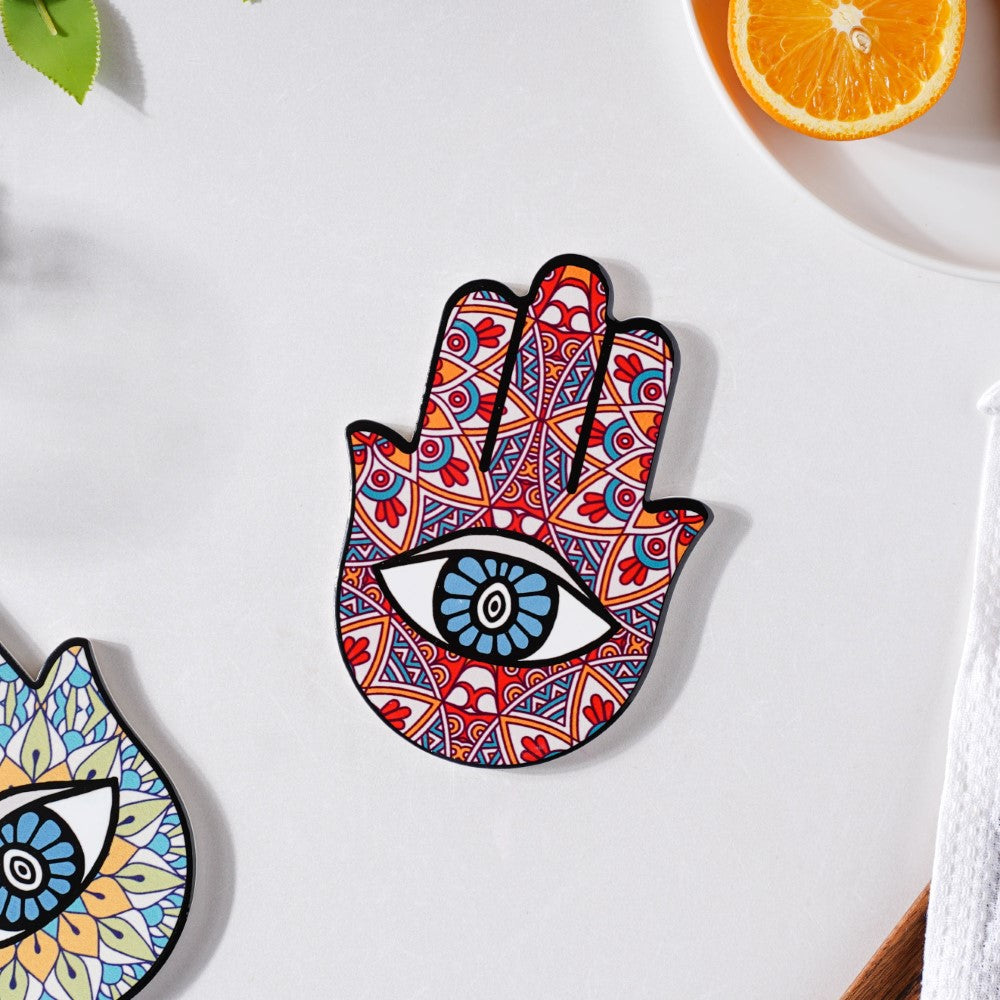 The traditional Moroccan tile pattern and Persian style art are well-known throughout the world. They can be called the “world’s eighth wonder” for their intricacy, vibrant hues, and harmonious blend of mandalas. Our collection of ceramic coaster/trivet is a gateway to incorporate this eighth wonder into your living room, dining table or as a beautiful decor piece. While the trivets are the quintessential companion of your ceramic, earthen, copper, clay, glass pots, hotpots, pans, bowls and plates, other cookware, the coasters can be the new best friends of serveware, wine glasses, cocktail glasses, and glass coffee mugs or cups.