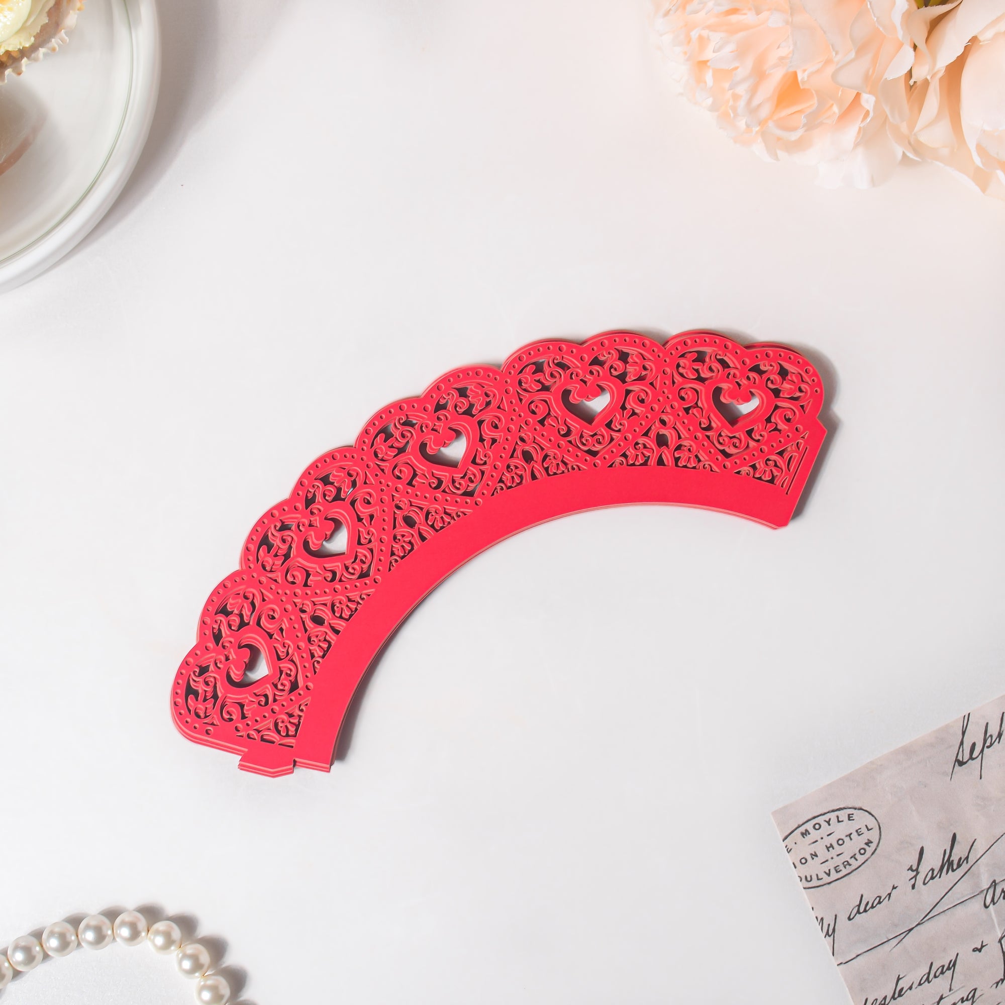 Nestip: Use the red heart muffin wrapper to decorate pastries and impress guests at a high-tea party.
