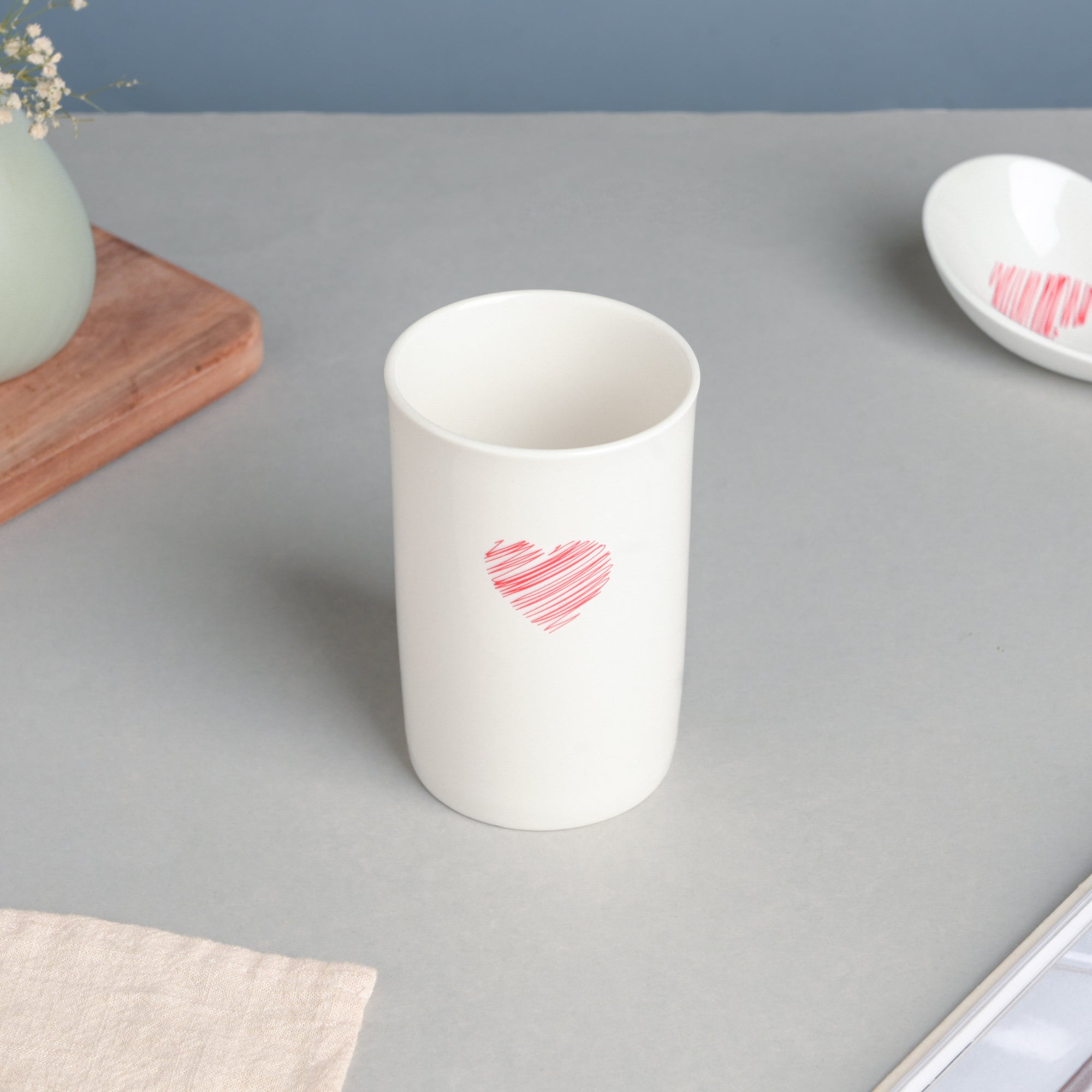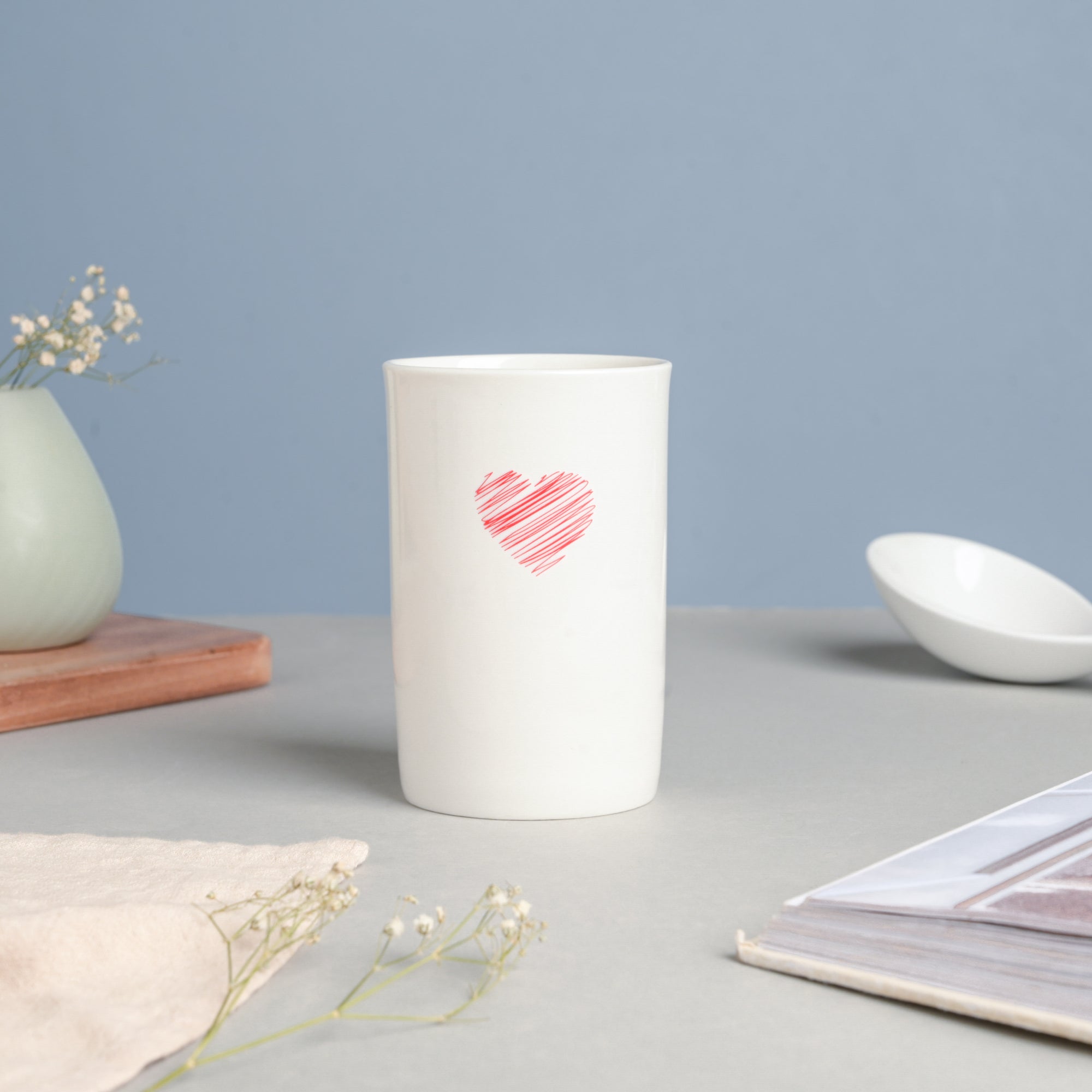 Crafted in ceramic with glazed finish, the pen stand looks appealing with a scribbled red heart at the center. The cylindrical tumbler can be used to serve both hot and cold beverages like tea, coffee, milk, or juice. The tumbler will double up as a pen stand or a cutlery stand. One can make a set of ceramic organizer and stationaries to gift them as a hamper at a housewarming party.