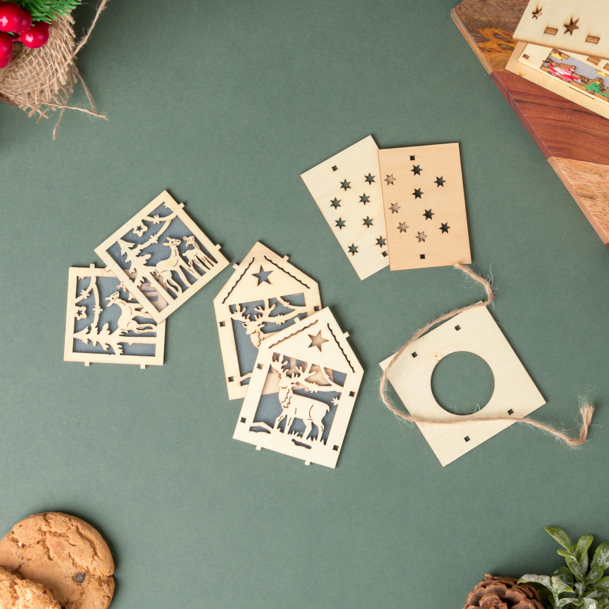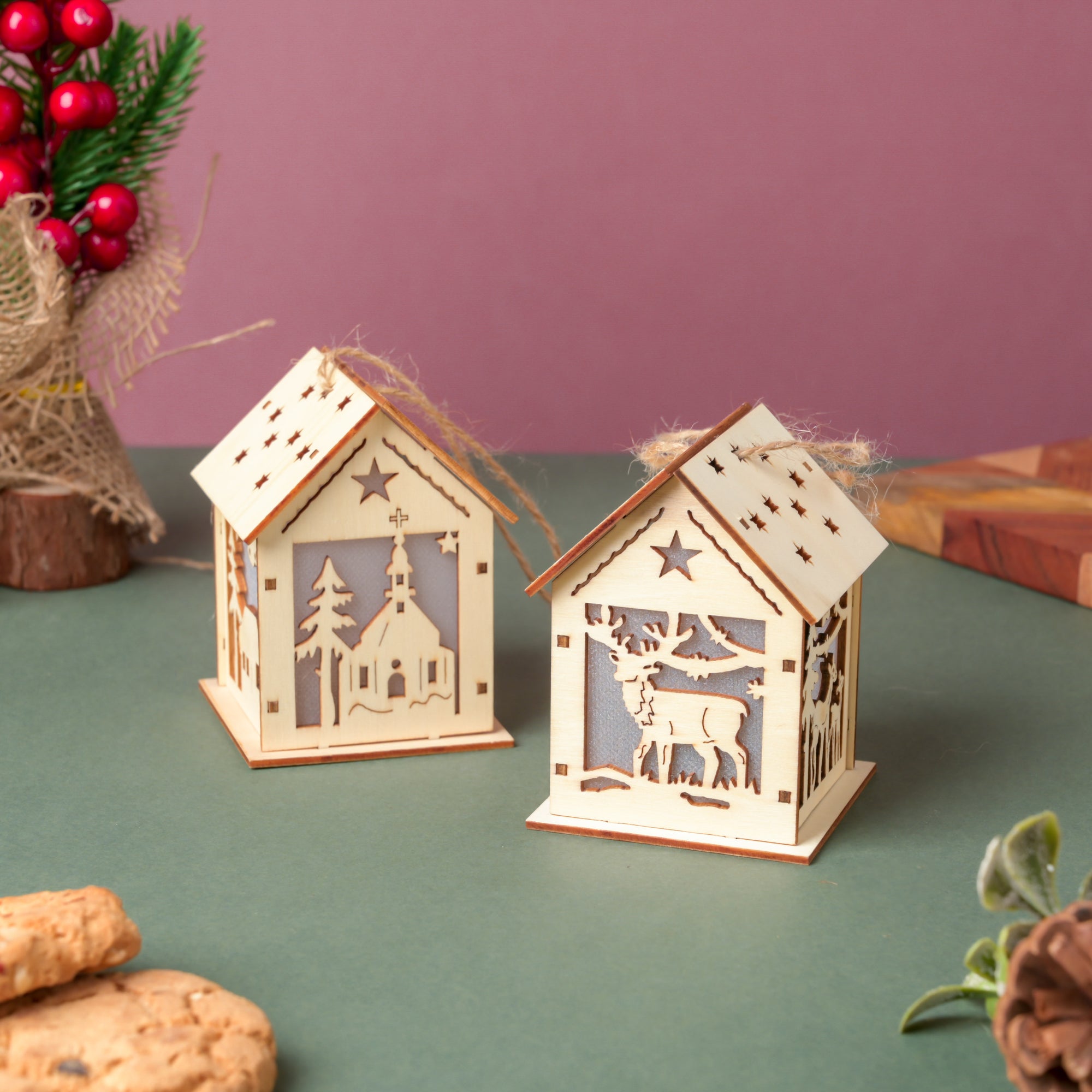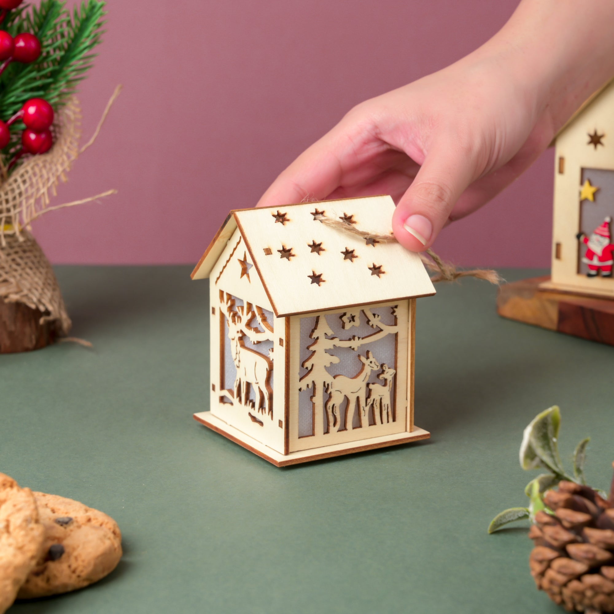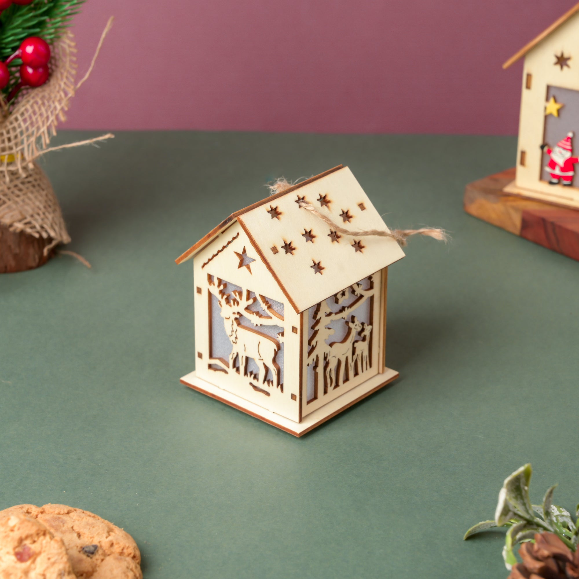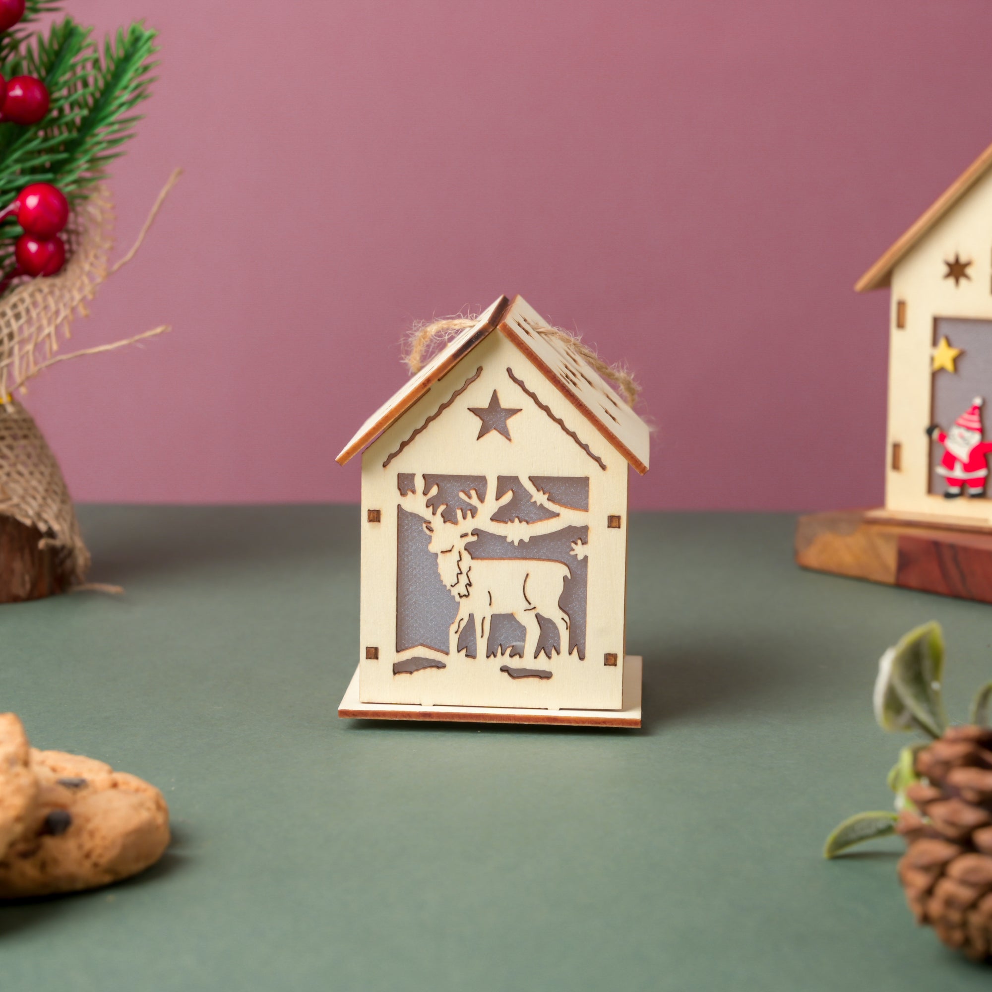 Reindeer Wooden House DIY LED Christmas Decor Hanging