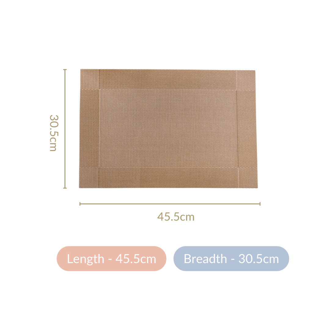 Integrating these table mats into your dining setup is effortless. Simply unfold and place them on your dining table, ensuring the anti-skid feature is in contact with the table surface for stability. The rich bronze color adds a touch of sophistication, complementing various table settings and providing a practical solution for your table surface.