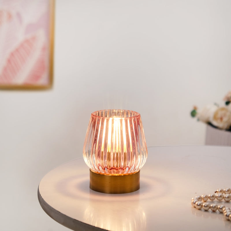 This battery-operated table lamp blends timeless design with modern technology for a versatile lighting solution. Powered by 2 AAA batteries, the glass lamp ensures convenience and portability, making it perfect for any space.