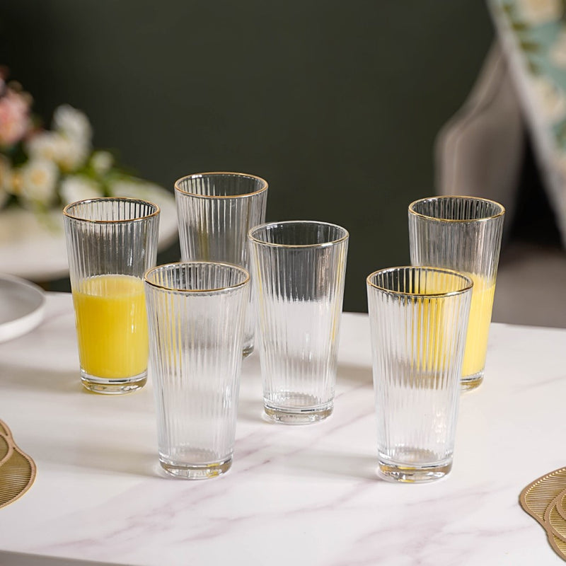 Ribbed Gold Rim Tall Tumbler Set Of 6 350 ml