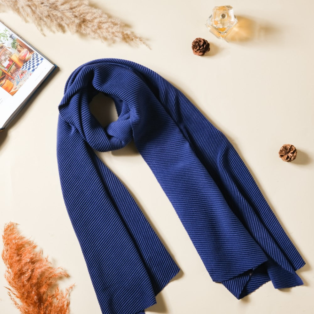 There are very few other colours that can match the versatility of blue, which makes the blue stole scarf a much-coveted piece of winter wear. The deep navy blue colour of the winter scarf can go well with any shade and colour. Use the blanket scarf to play around and mix and match different colours for a unique and fashionable look. The high-quality polyester material of the ladies' scarf also makes it ultra-smooth and soft to the touch for a comfy experience.
