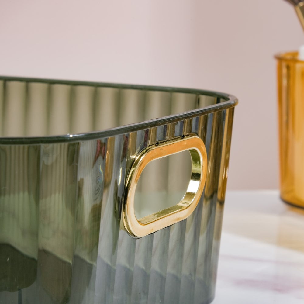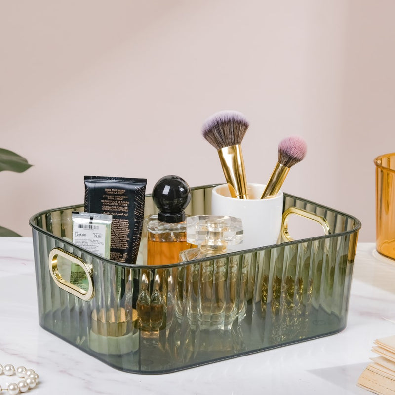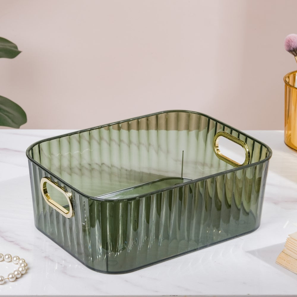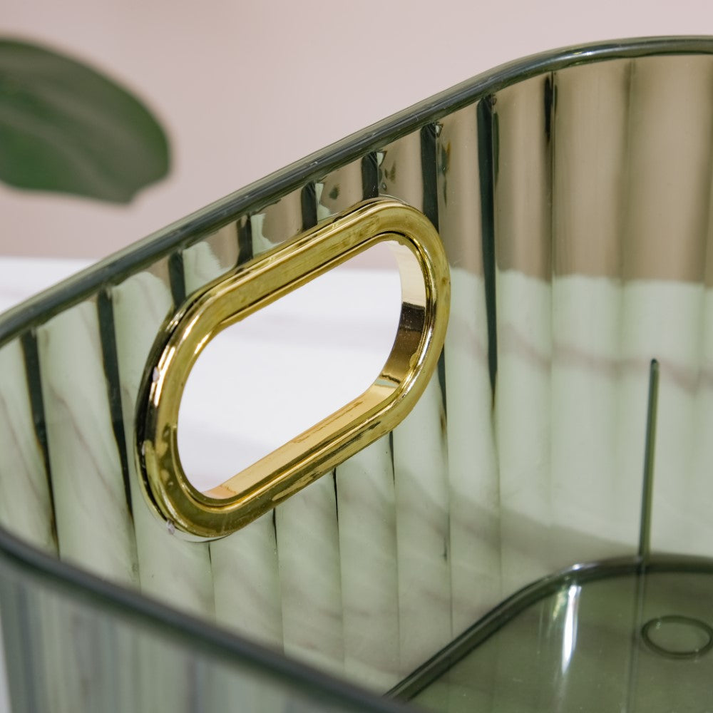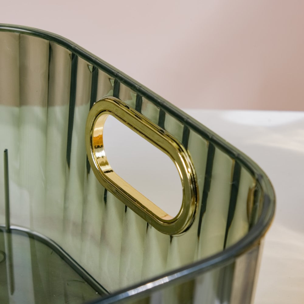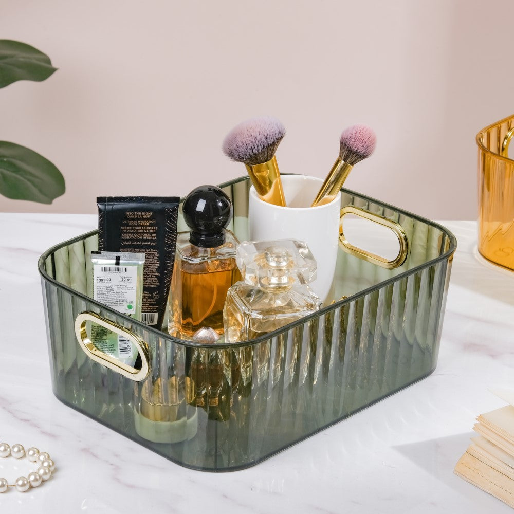 The storage basket is great to organize your home and declutter all the mess from all nooks and corners. Easily set up this basket and create additional space to keep all your essentials together and create a visually appealing environment. This multipurpose organizer can be used in the kitchen, bathroom, bedroom, living room, desks, and shelves to declutter every space. You can even use this in offices to clean your desktop and sitting space or use it as a desk organizer. The basket has built-in easy-gripping handles which makes it easy to carry from one place to another. This storage basket is great to declutter your home in no time, use as a makeup organizer for yourself, or as a toy storage basket for kids.