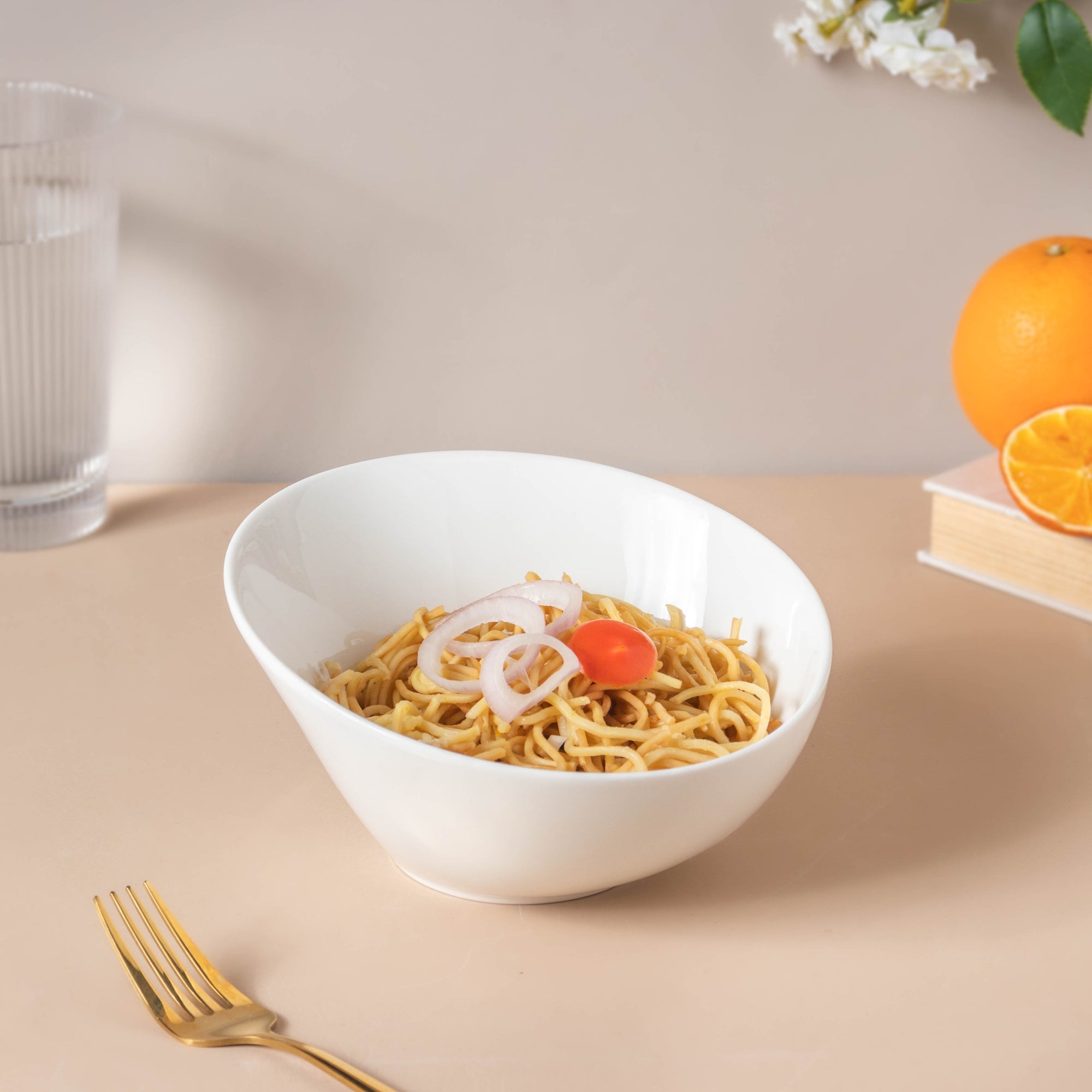 Riona Ceramic Round Noodle Bowl White 400 ml