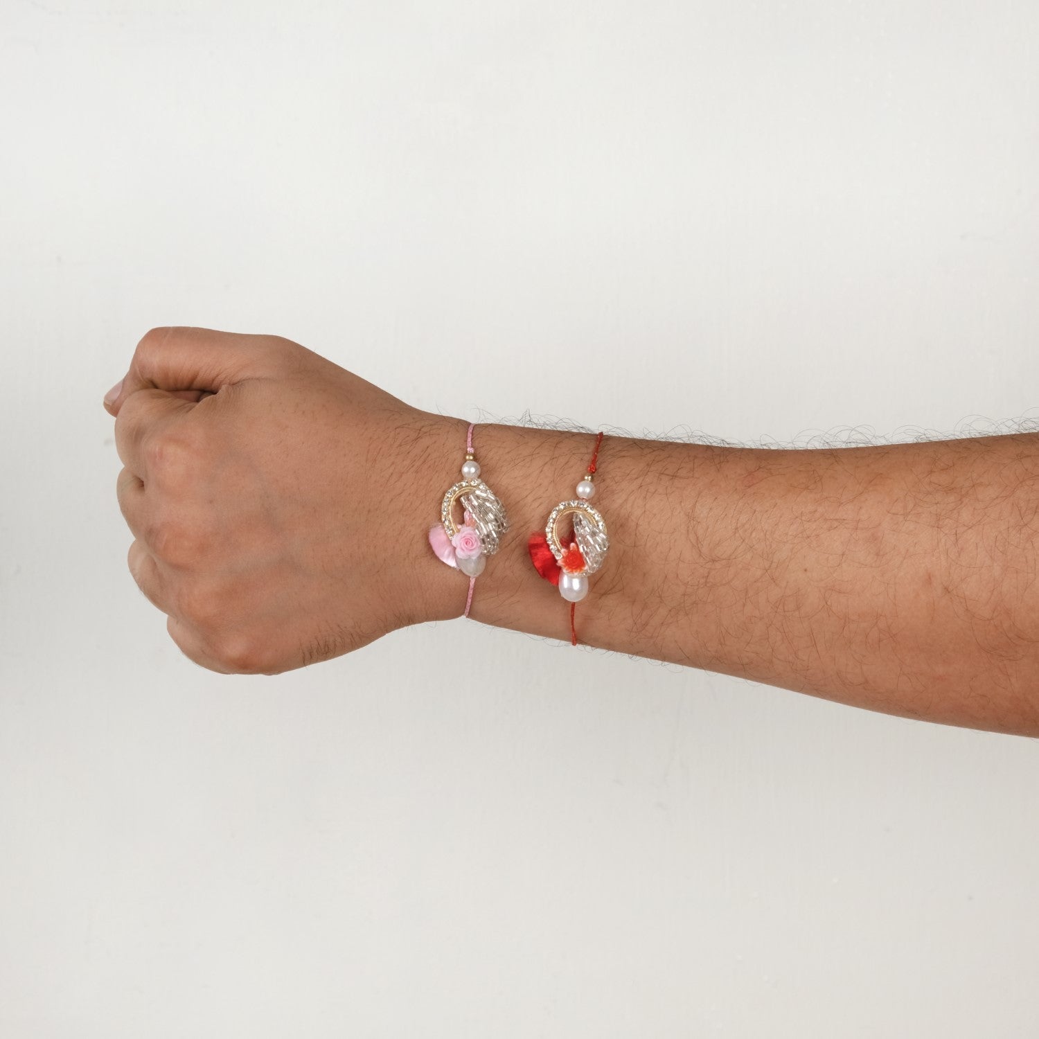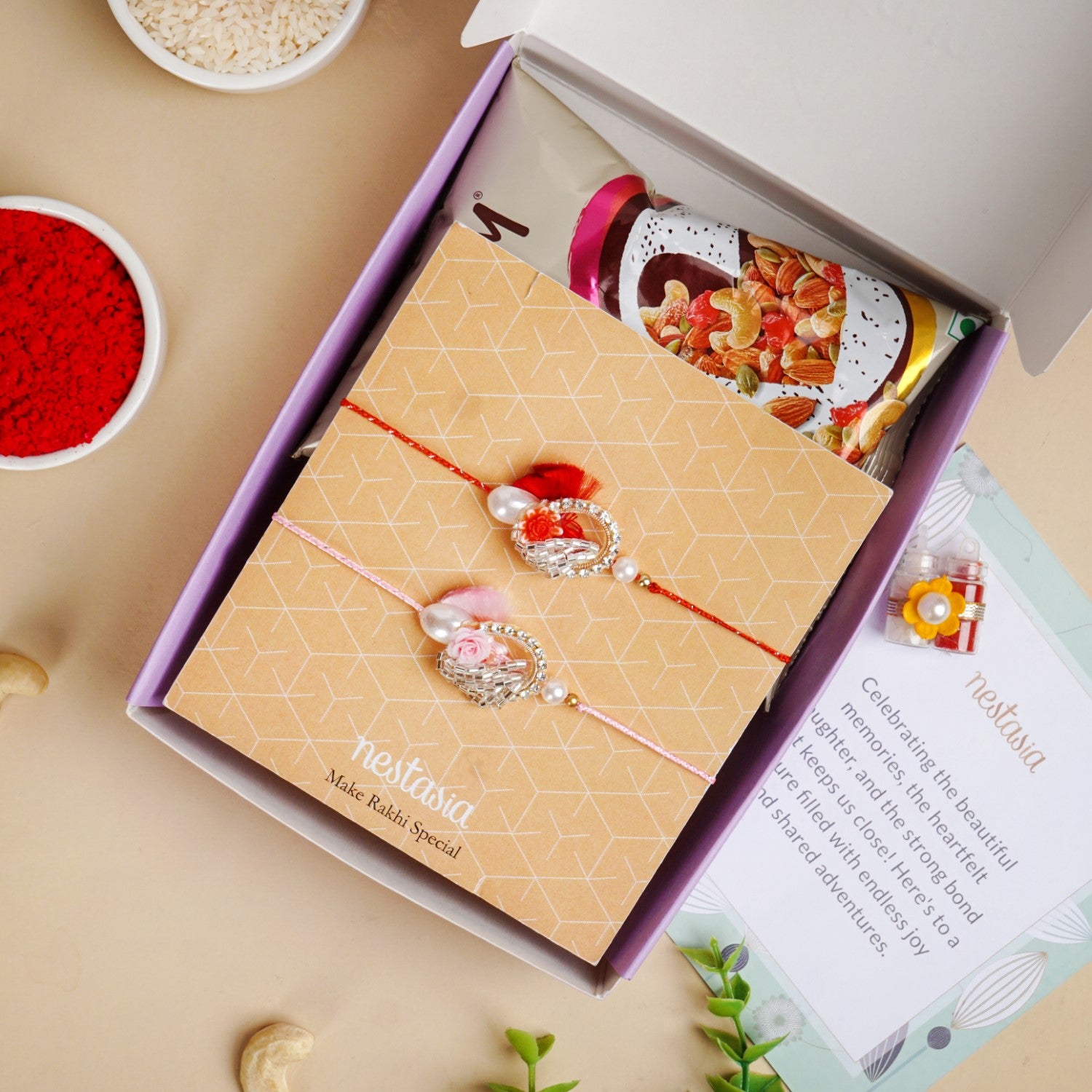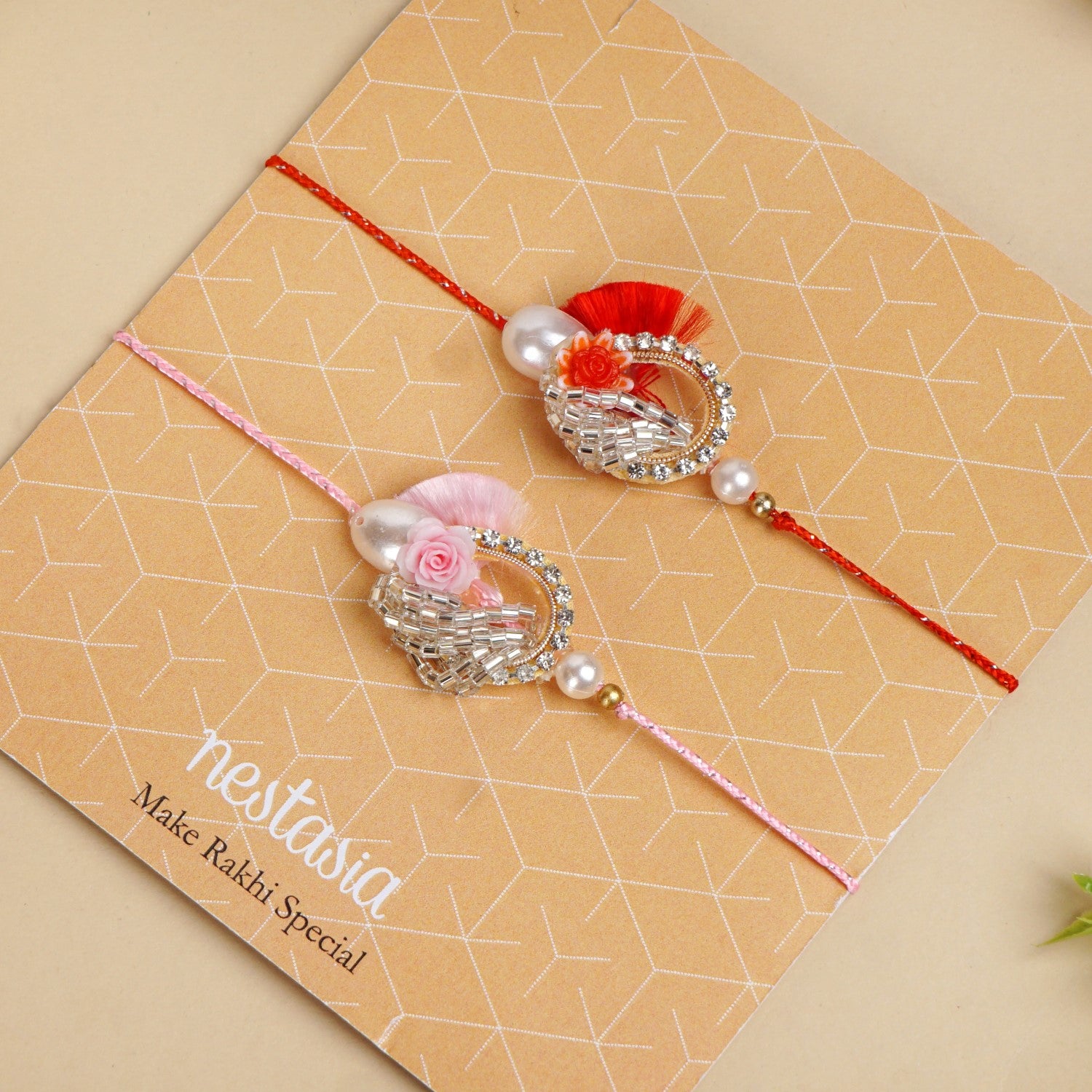 Rose and Pearl Set Of 2 Rakhi Gift Set