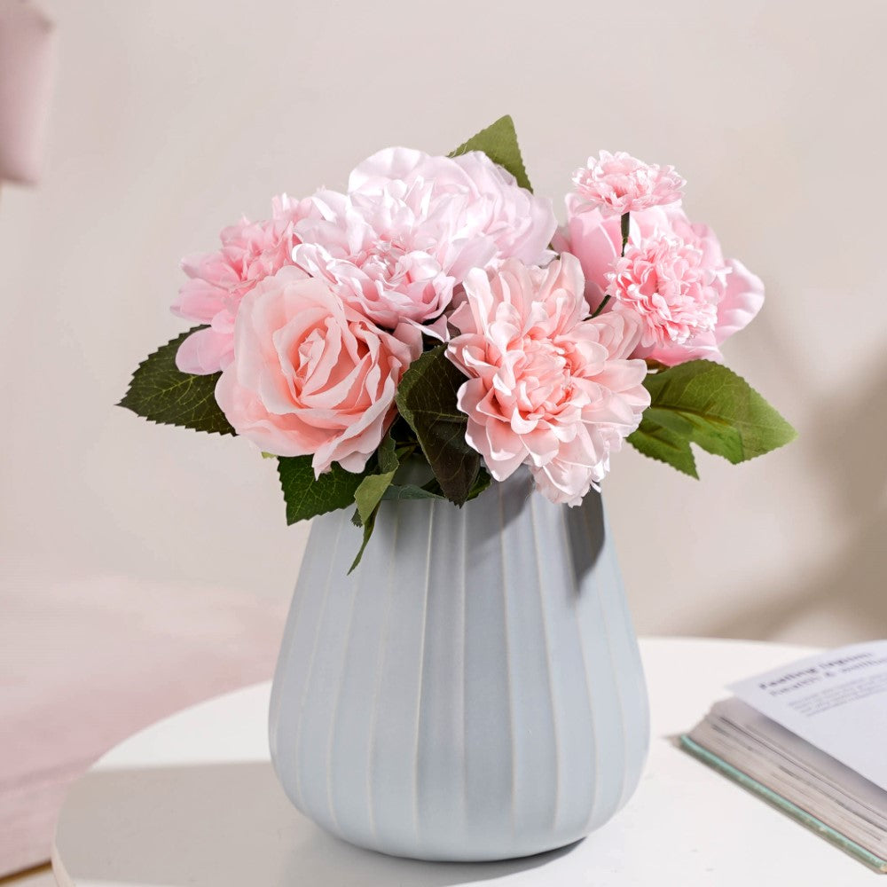 The faux flowers bouquet features a beautiful array of pink roses, carefully arranged to create a stunning table decor display of colour and vibrancy. The artificial flower bundle of blooming pink roses is perfect for any occasion to show your affection. The lush, full blooms and delicate petals of the pretty pink roses as your home decor are sure to impress all your guests. The flower vase decoration with the rose bouquet will add a class to your modern interior design. Features: -Premium quality -Looks natural and real -Fade-resistant -Long-lasting -No maintenance -Hypoallergenic -Excellent party decor -Perfect for gifting flowers. Nestip: The artificial flowers can be used to create a whimsical fairy garden in any corner of your house. Size: 30cm L Colour: Pink, green Material: PU silk, PVC Products included: 1 faux bouquet Style: YMKA135AF42