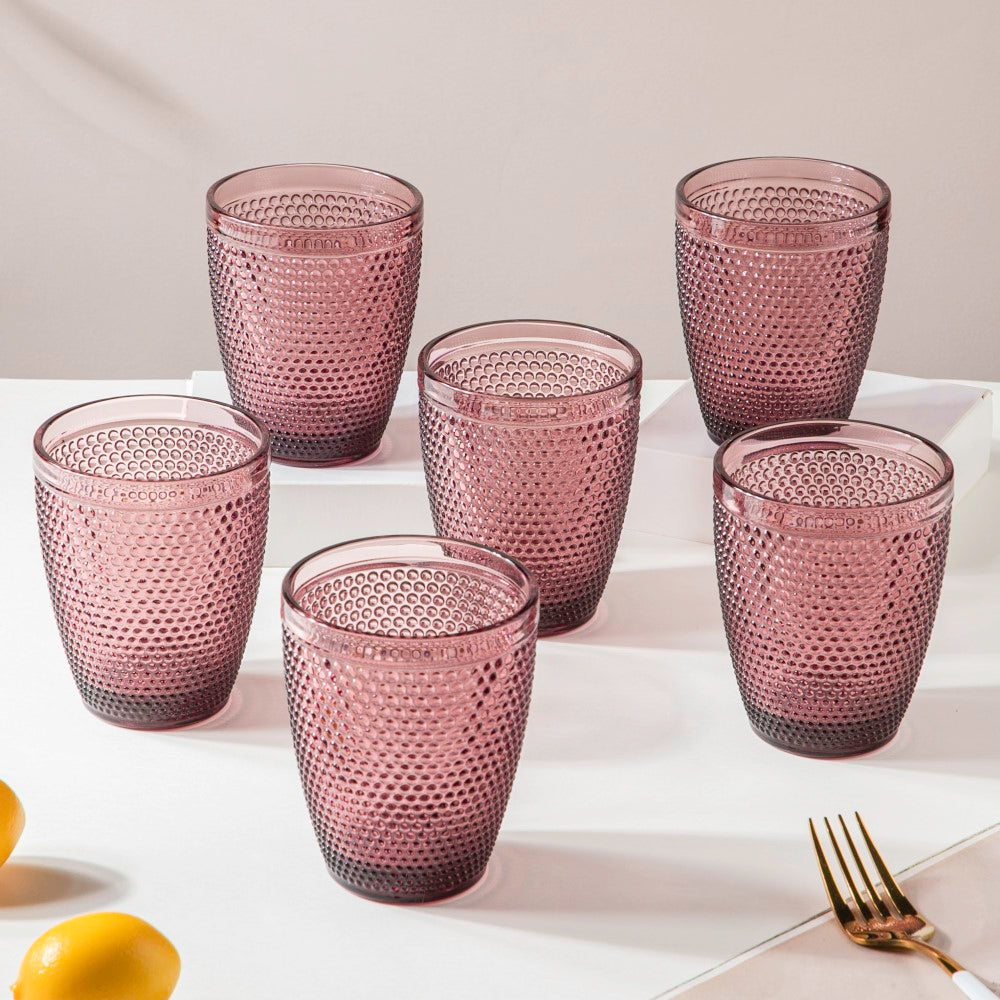 Neha bhargava Rose Crystal Tumbler Glass Mauve Set Of 6 250 ml