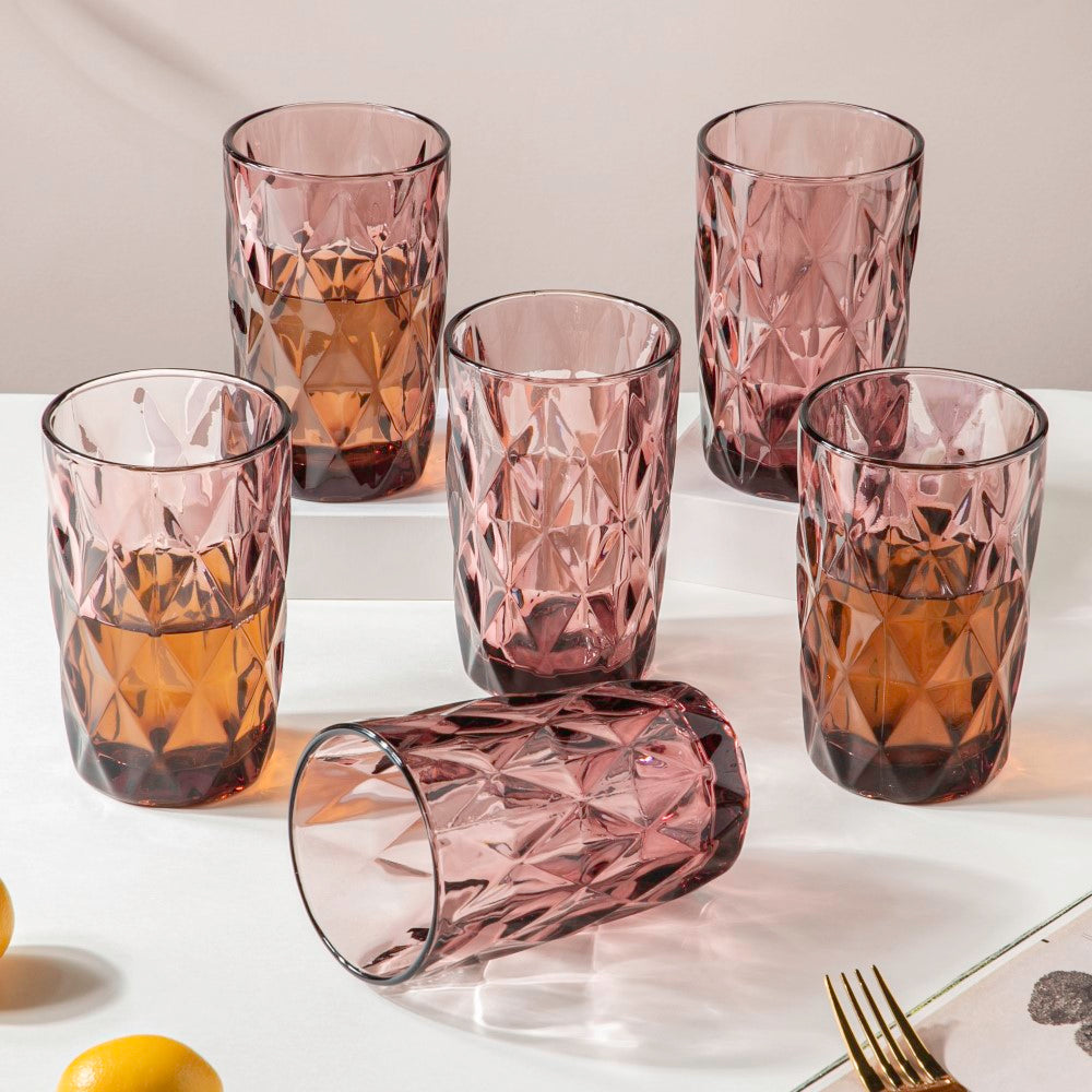 Quench your thirst with a hint of texture! Introducing our gorgeous set of 6 textured glass tumblers, that are created to enhance your drinking experience. In addition to being excellent for serving water and juices, these durable glasses also give your favourite alcoholic beverages a touch of flair. These textured glasses are ready to dazzle, whether you're serving a cool cocktail or a glass of juice. With this essential glasses set, you can enjoy your beverage while looking stylish.